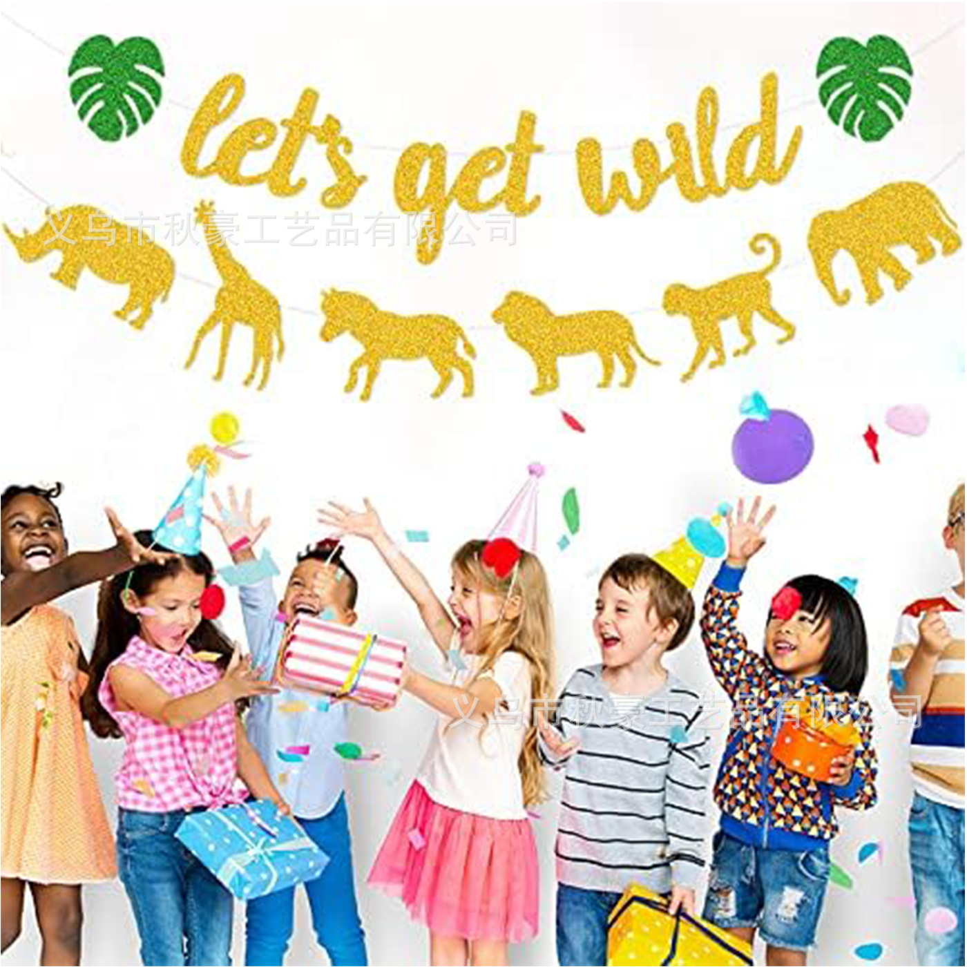 Bosque Jungle Animal Party Wild One Party Decoración de cebollas doradas Banderas Anniversario Fiesta de cumpleaños