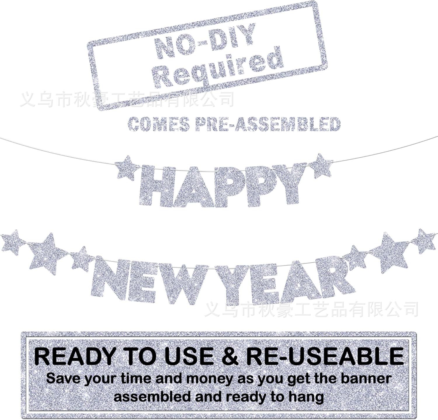 Happy new year2025 año nuevo año nuevo Navidad Nochevieja decoración de papel en polvo de cebolla dorada bandera de letras banner