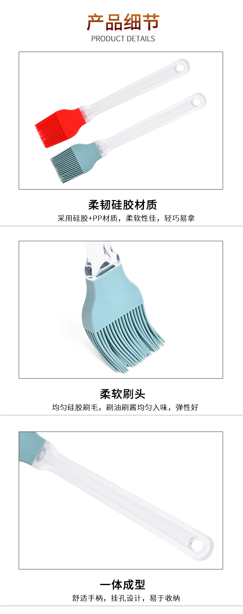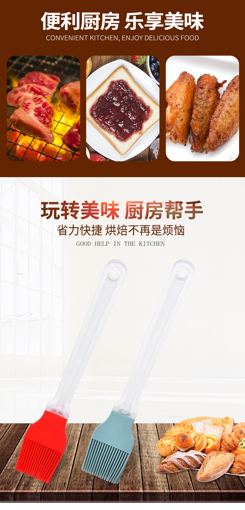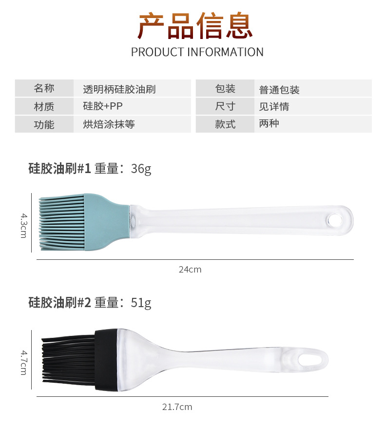 Herramientas de horneado mango transparente separación cepillo de silicona barrido de pelo cepillo de barbacoa fábrica de stock