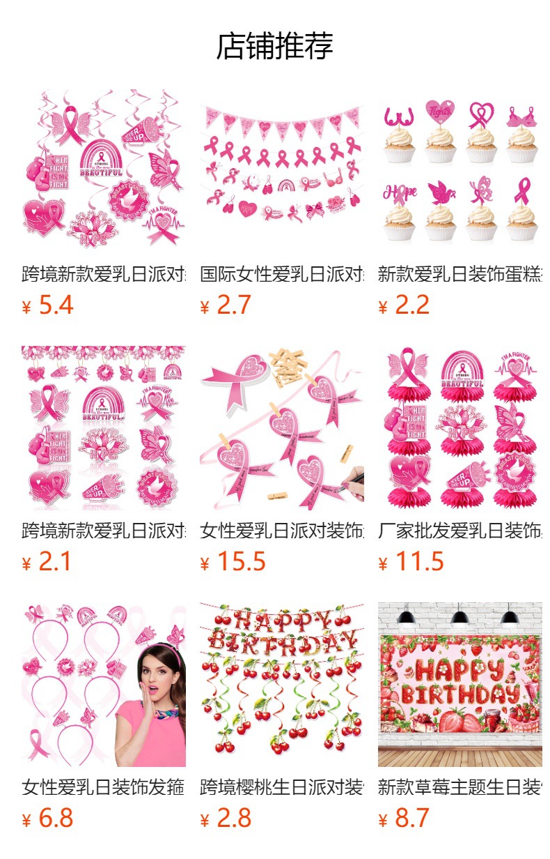 产品用途:爱乳日派对装饰,家居布置,女性爱乳日活动布置,派对背景装饰。
