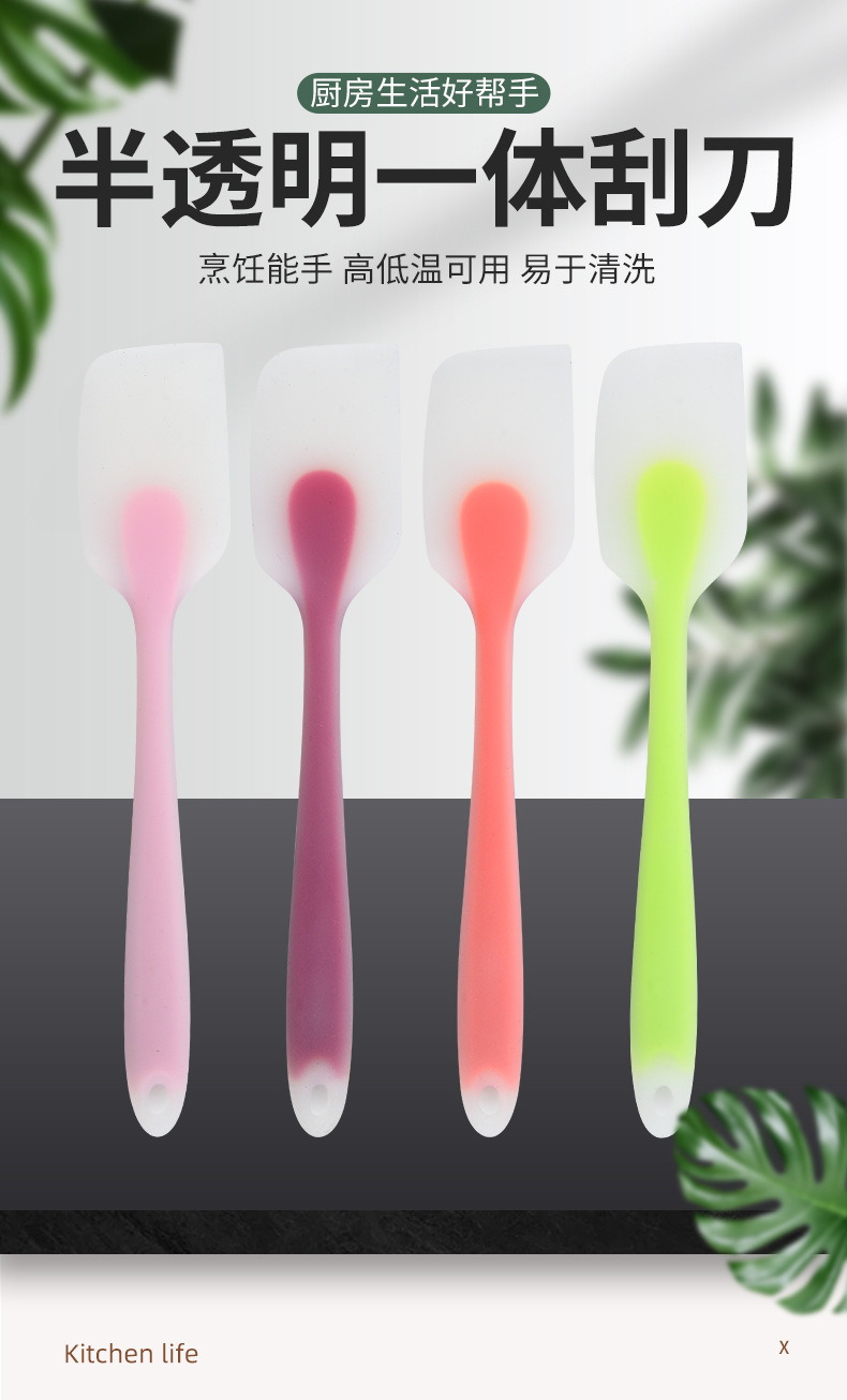 Pastel espátula translúcida de una pieza de grado alimenticio resistente a altas temperaturas raspador de crema raspador de silicona herramienta para hornear