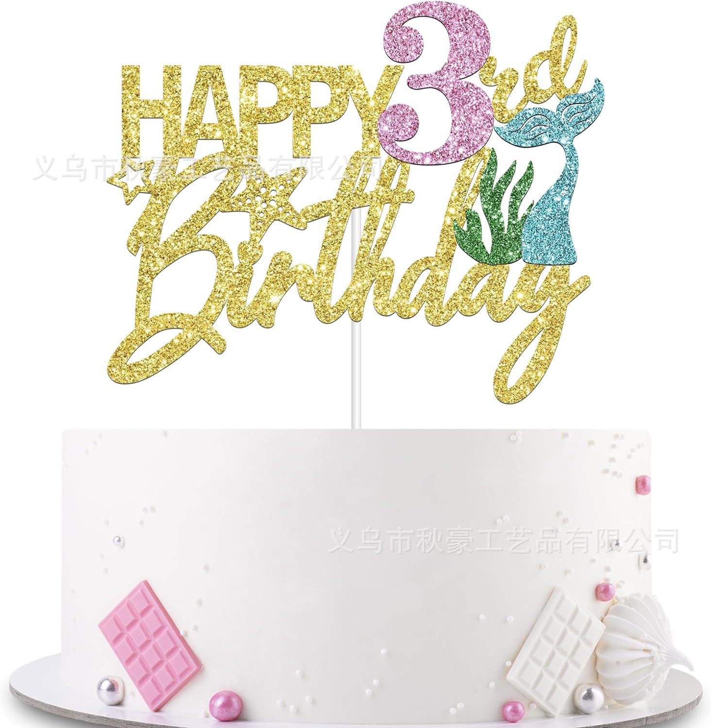 Mermaid Happy 3rd Birthday Cake Decoration Gold Flasher Mermaid Cake Decoration Ocean Theme