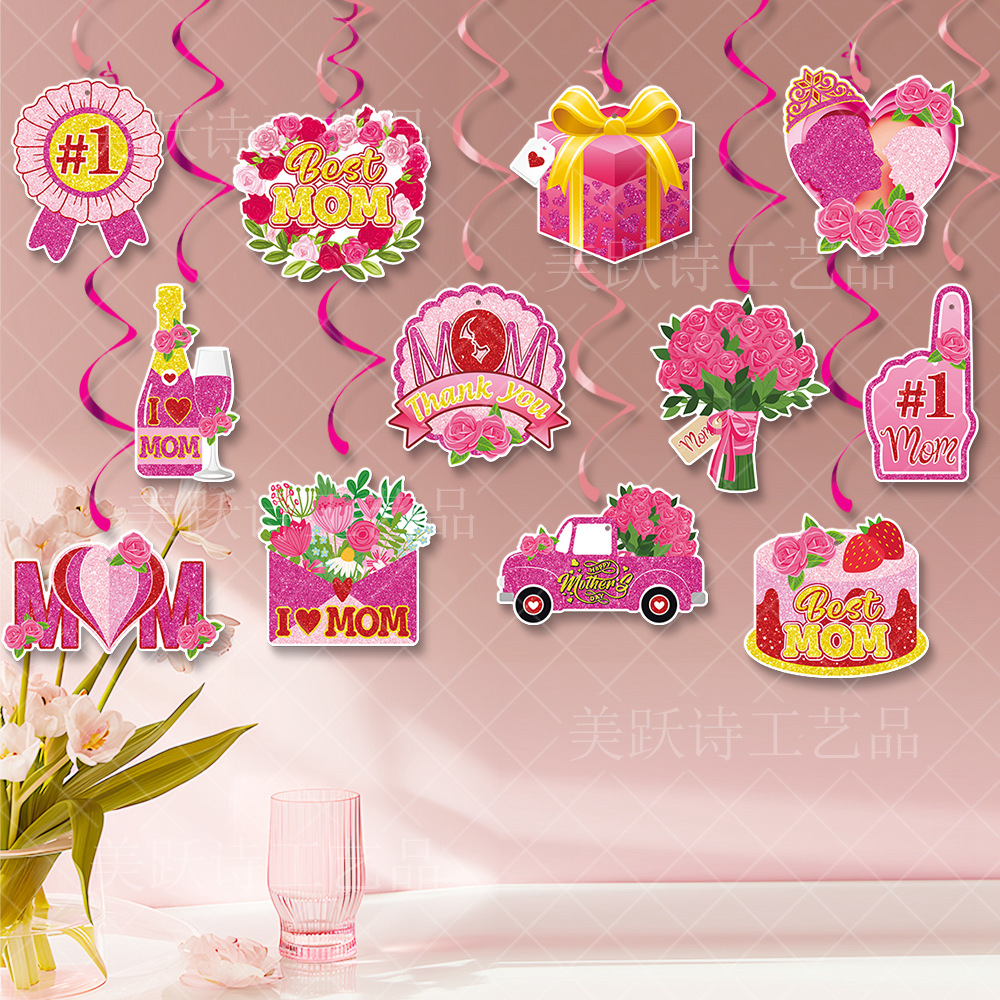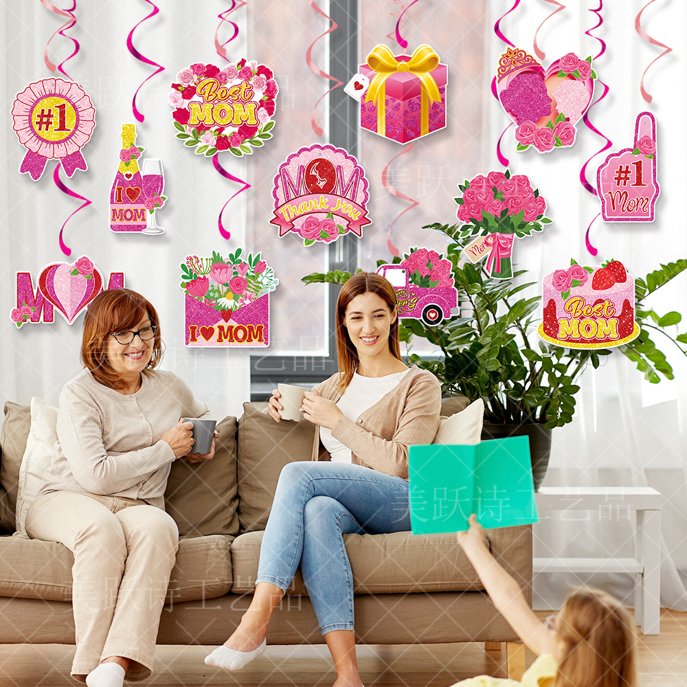 产品用途: 母亲节装饰用品,天花板装饰螺旋挂饰,母亲节节日家居用品,节日气氛布置。