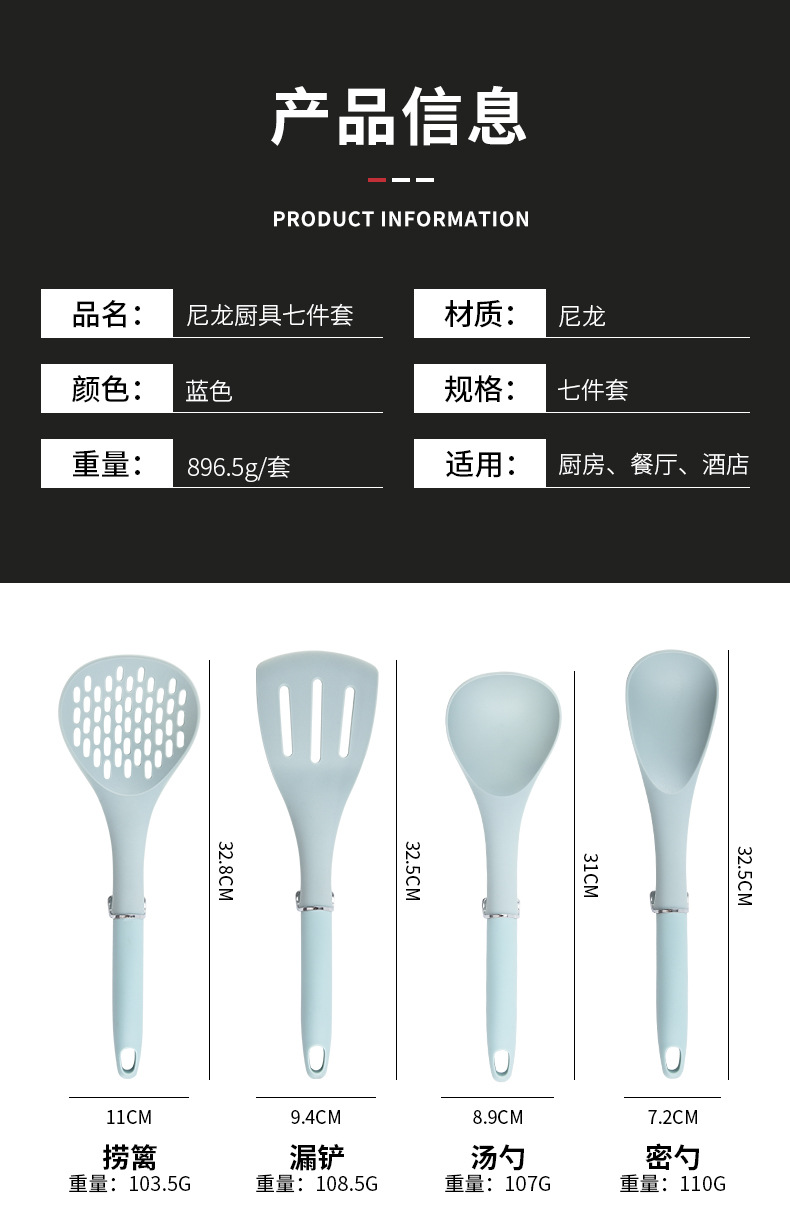 | Tamaño | Juego de 7 piezas de utensilios de cocina de nylon |
