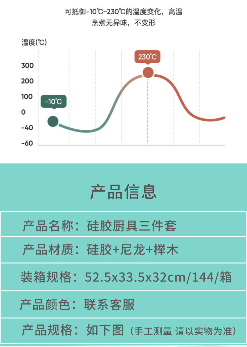 | Tamaño | Pala de silicona, cuchara de sopa de silicona, valla de silicona |