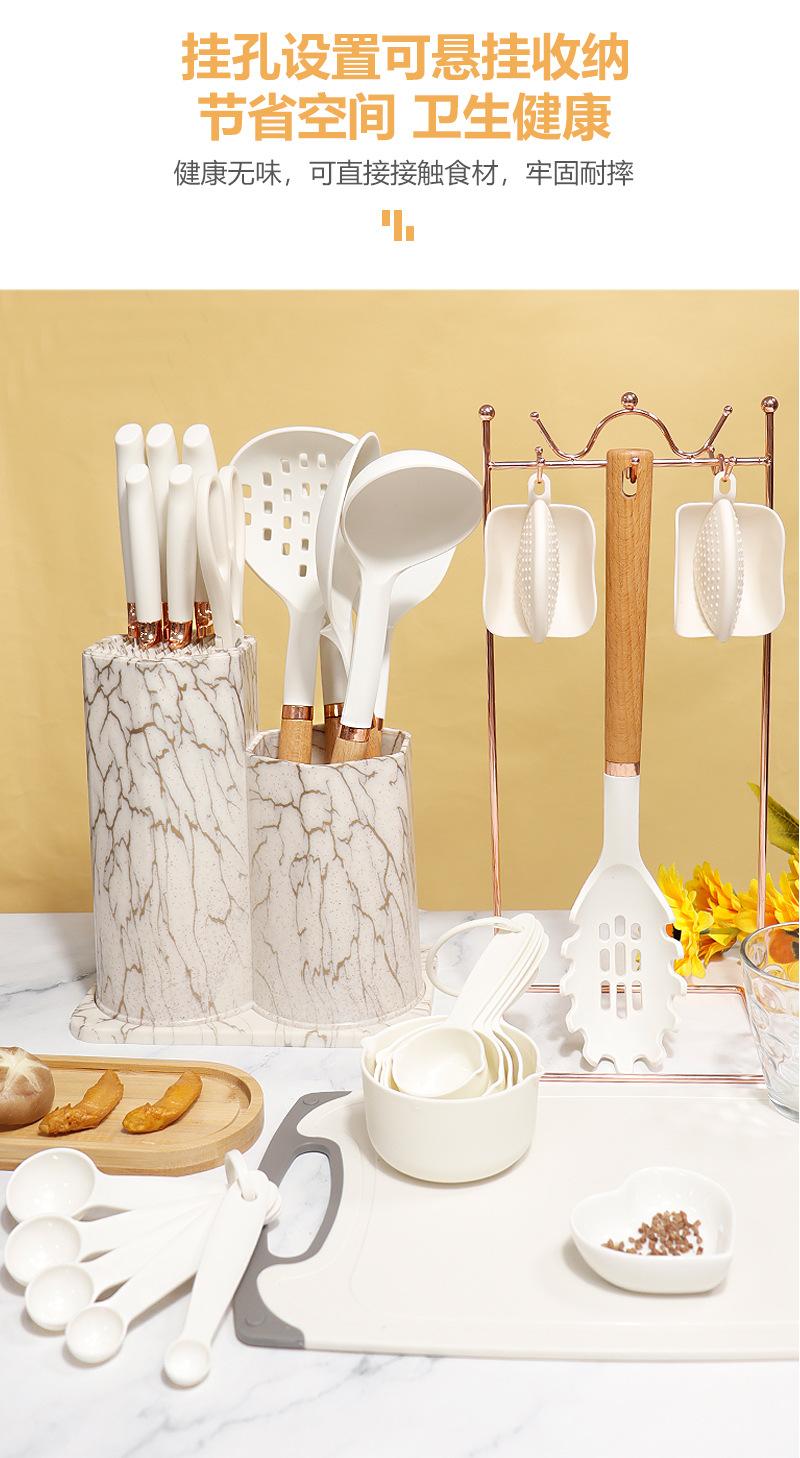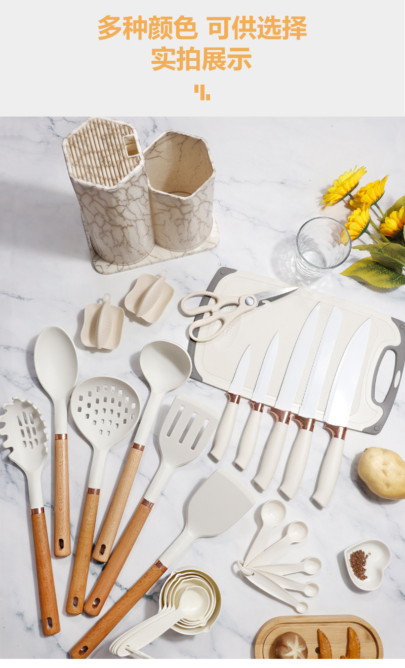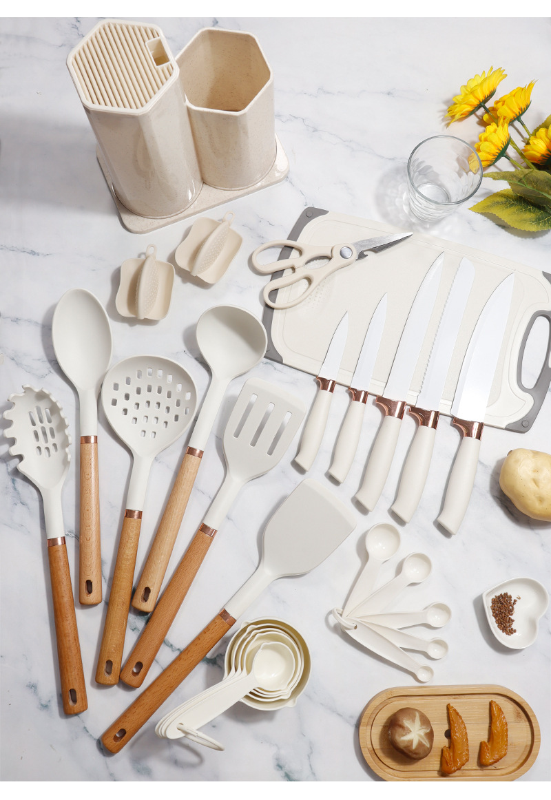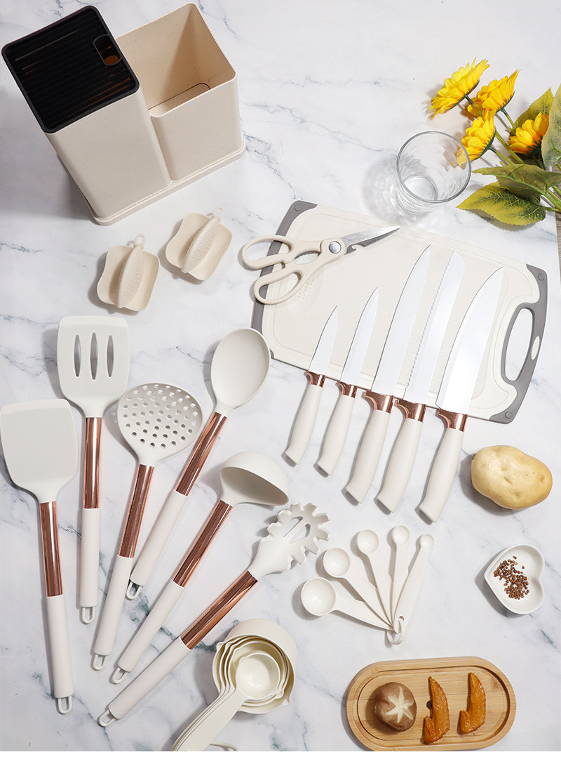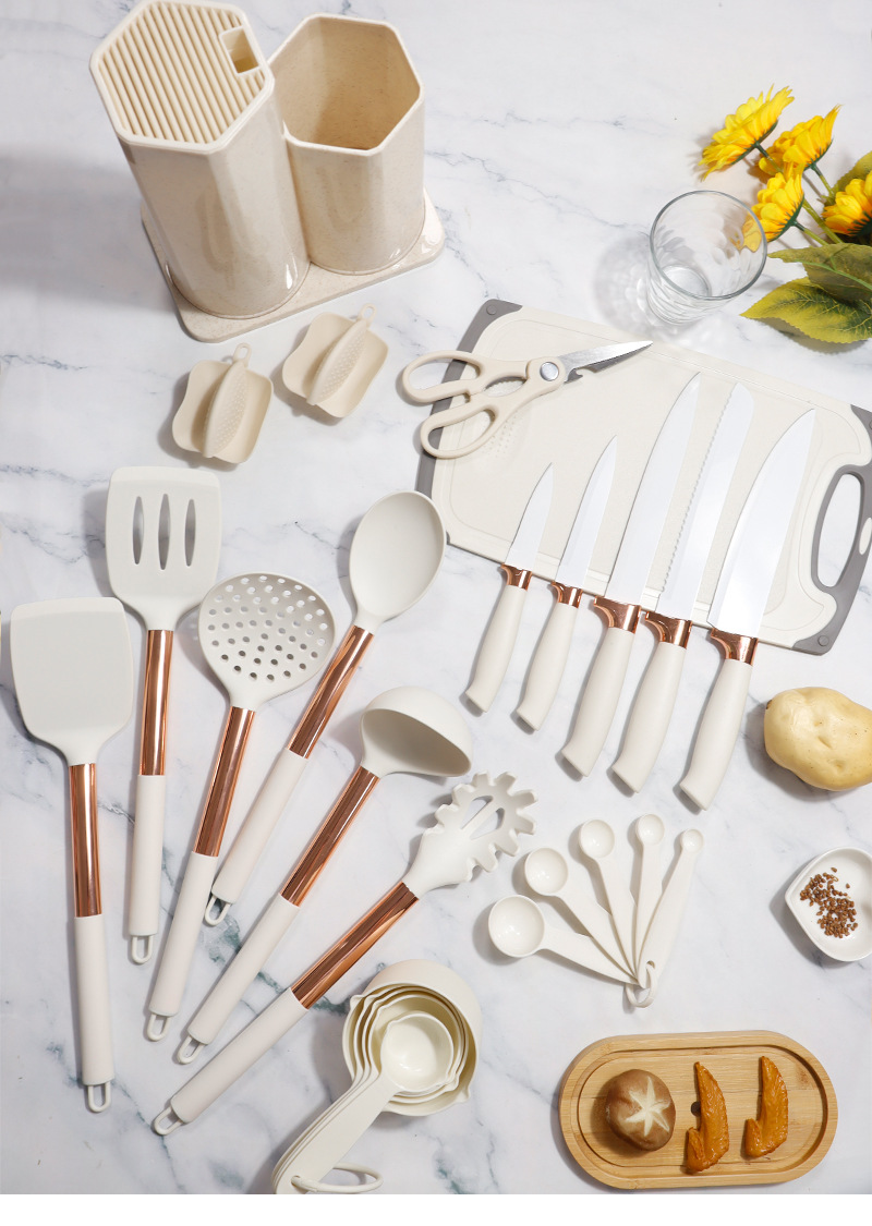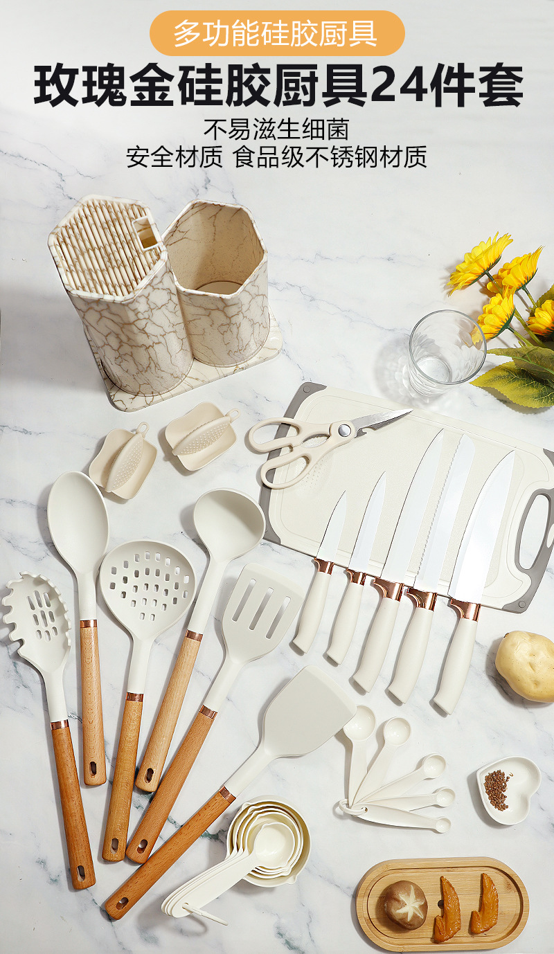 | Tamaño | Juego de utensilios de cocina de silicona de madera de haya de oro rosa 26,Juego de 26 piezas de utensilios de cocina de silicona con carcasa de oro rosa,Juego de utensilios de cocina de silicona PP de oro rosa 26 |