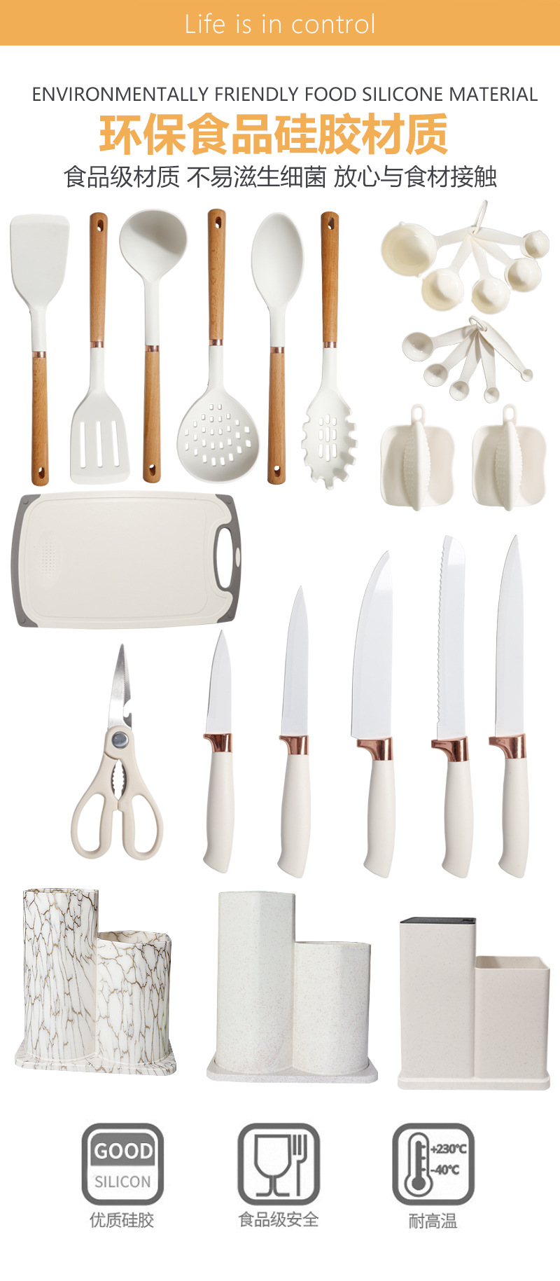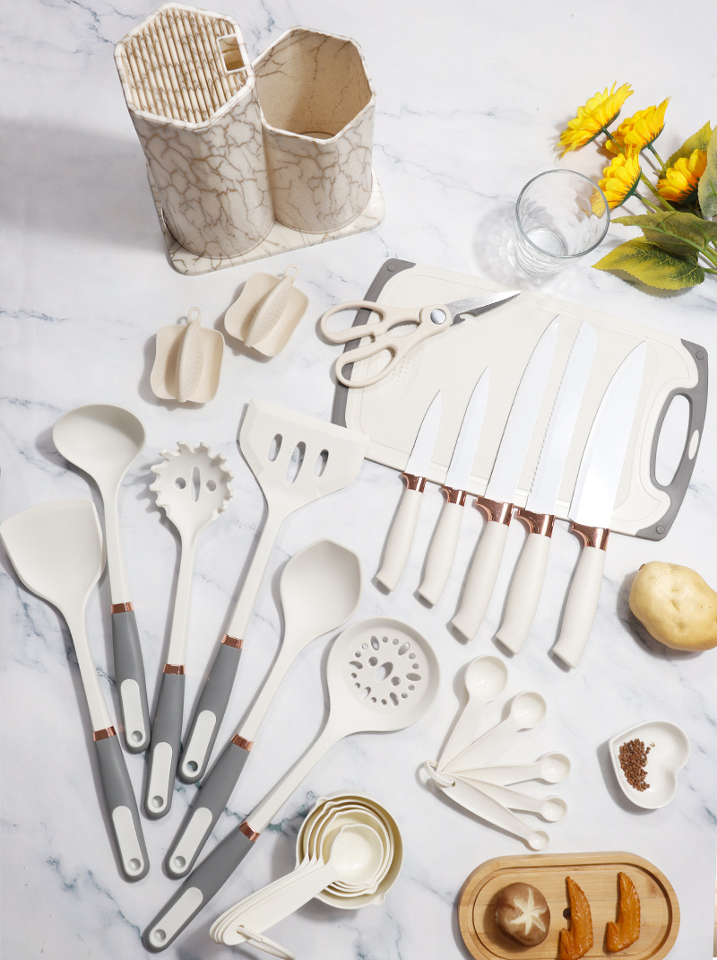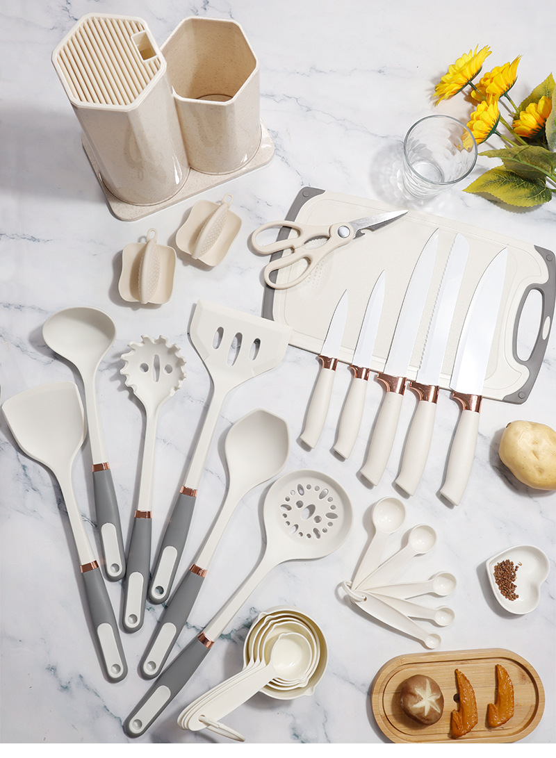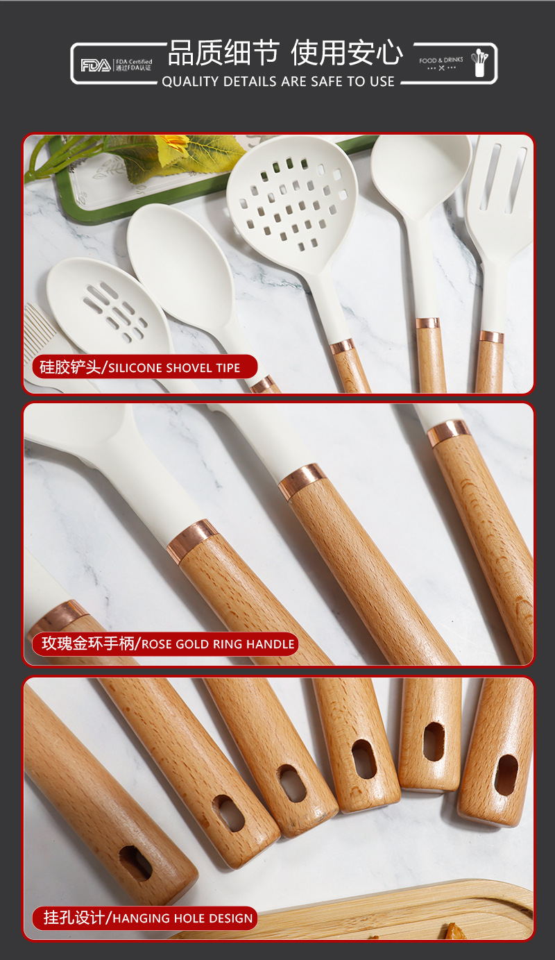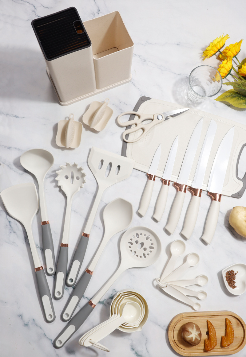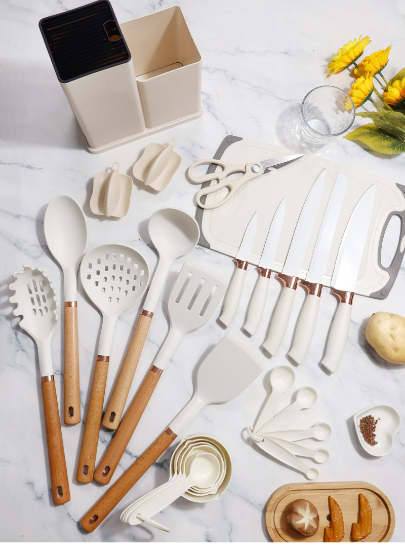 | Tamaño | Juego de utensilios de cocina de silicona de madera de haya de oro rosa 26,Juego de 26 piezas de utensilios de cocina de silicona con carcasa de oro rosa,Juego de utensilios de cocina de silicona PP de oro rosa 26 |