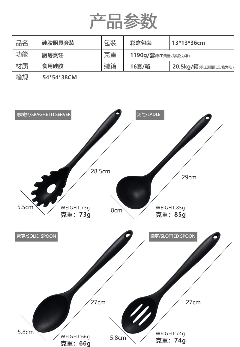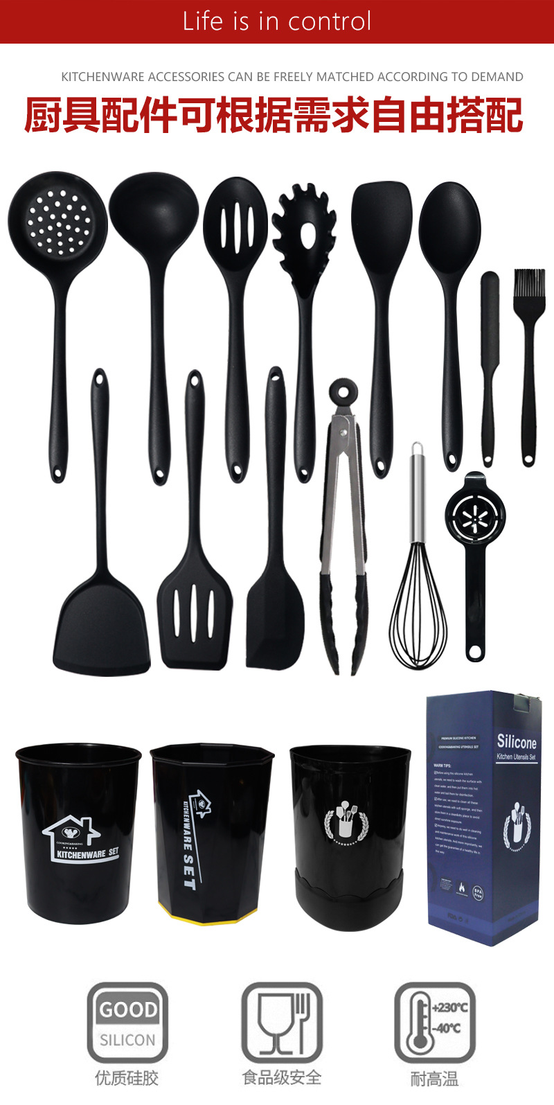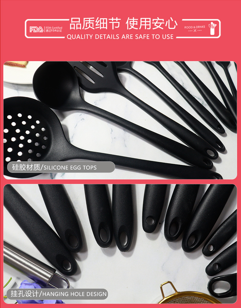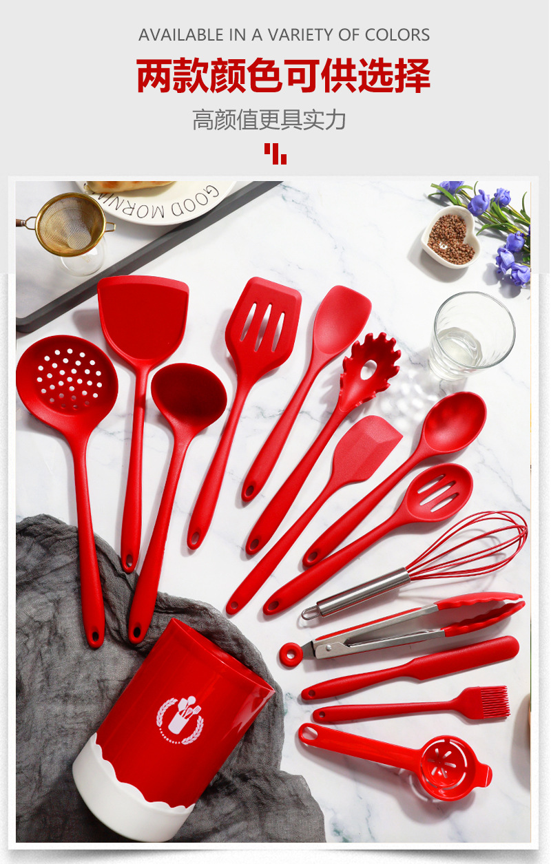 | Tamaño | Juego de utensilios de cocina de silicona de 10 piezas-rojo,Juego de utensilios de cocina de silicona de 10 piezas-negro,Juego de utensilios de cocina de silicona de 15 piezas-rojo,Juego de utensilios de cocina de silicona de 15 piezas-negro |