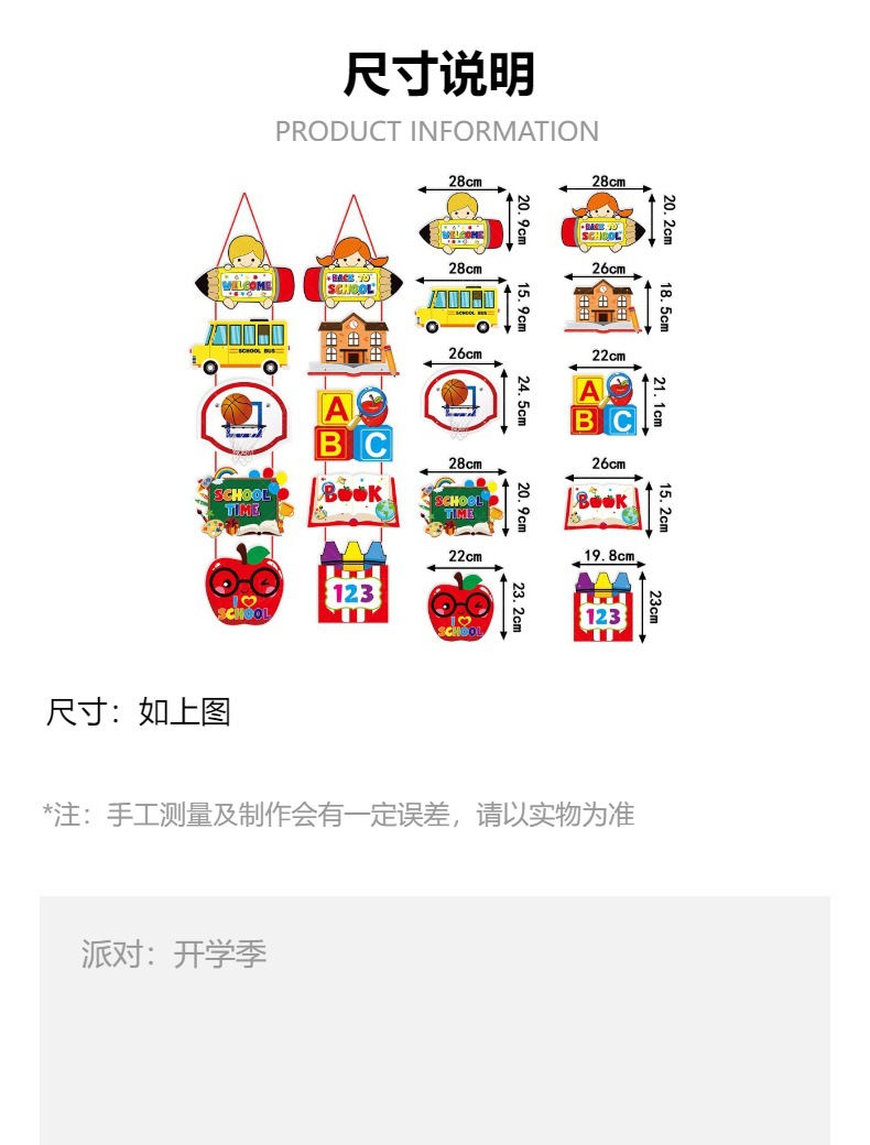 用途:开学季派对布置道具,可用于户外装饰,开学季派对场景布置门挂,返校主题派对装饰门前吊饰。