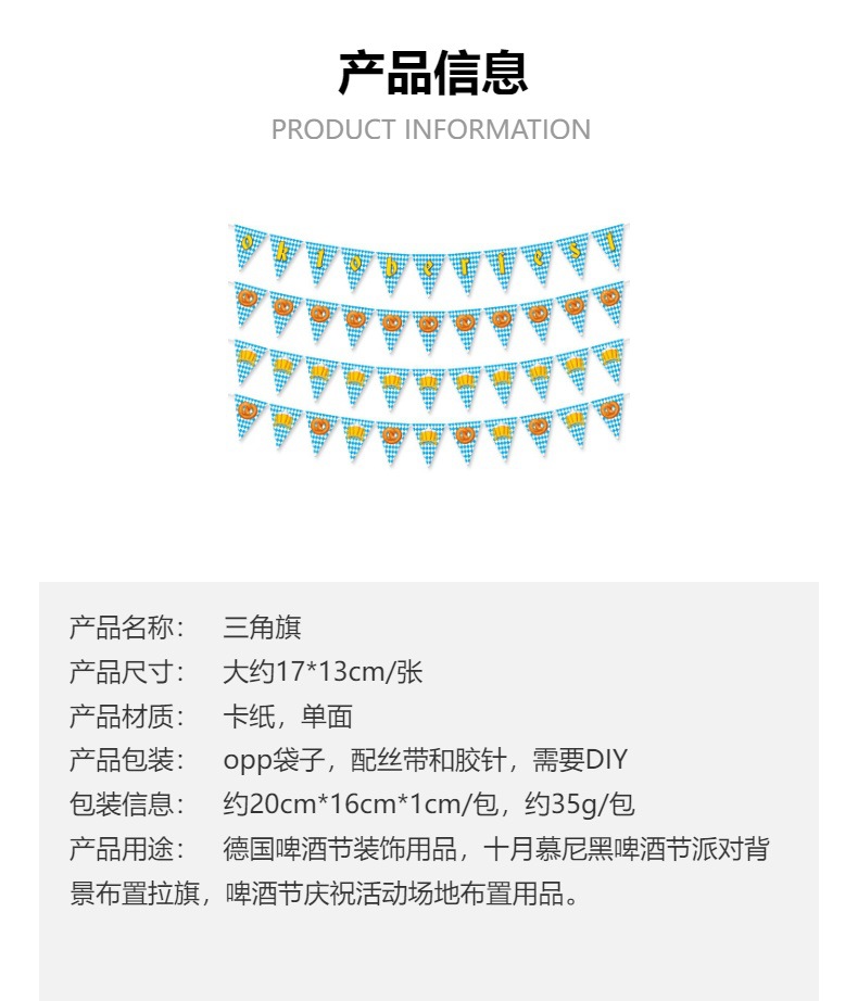 | Uso del producto | Suministros de decoración del Oktoberfest alemán |