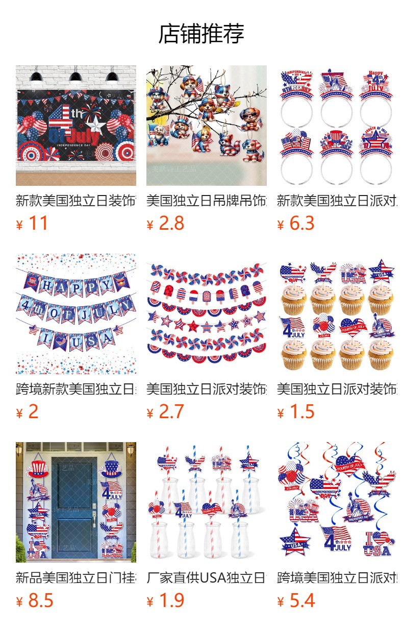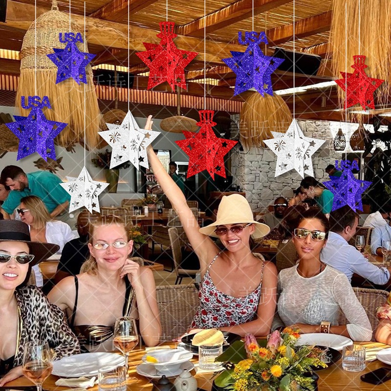 产品用途:独立日装饰挂饰吊饰,美国国庆节节日气氛布置用品,背景天花板装饰道具,美国7月4日独立日派对用品。
