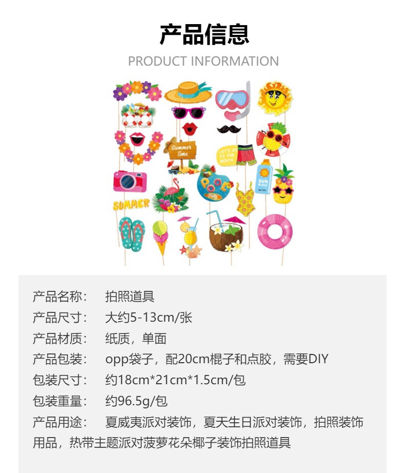 | Uso del producto | Accesorios decorativos fotográficos hawaianos |