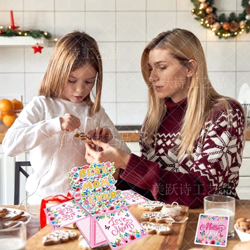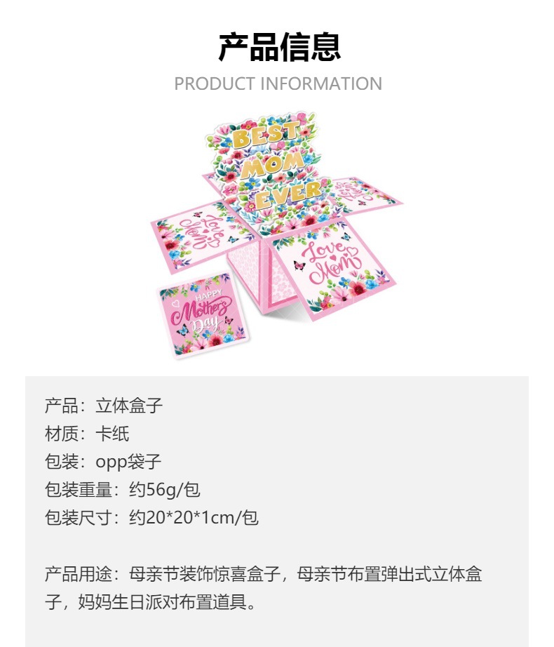 Decoración de fiesta del día de la madre transfronteriza 3D caja tridimensional decoración de cumpleaños de mamá decoración de regalo del día de la madre