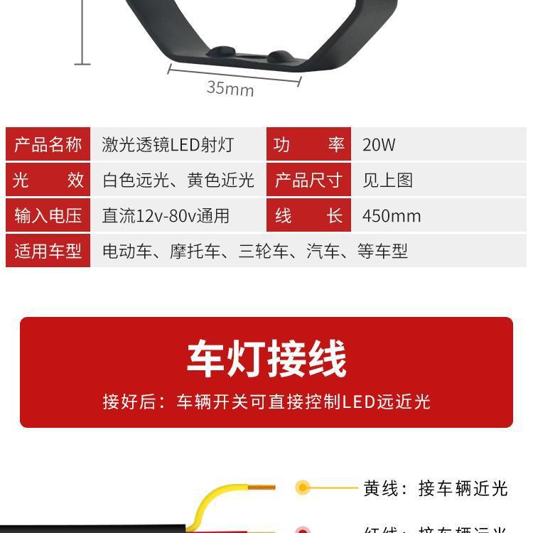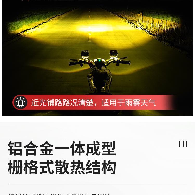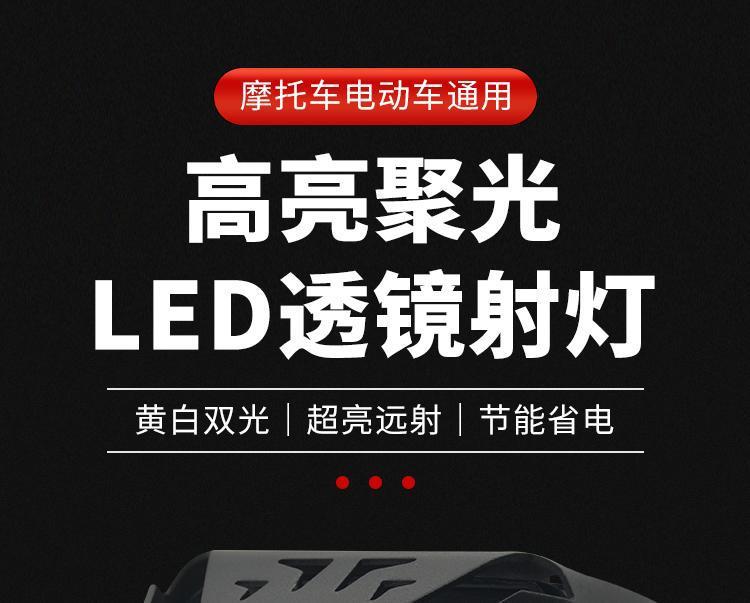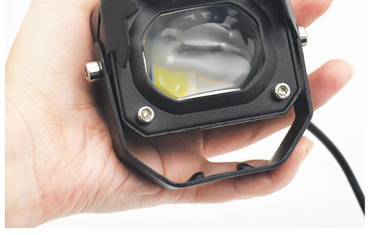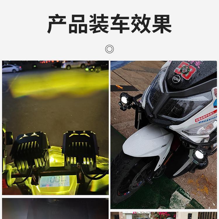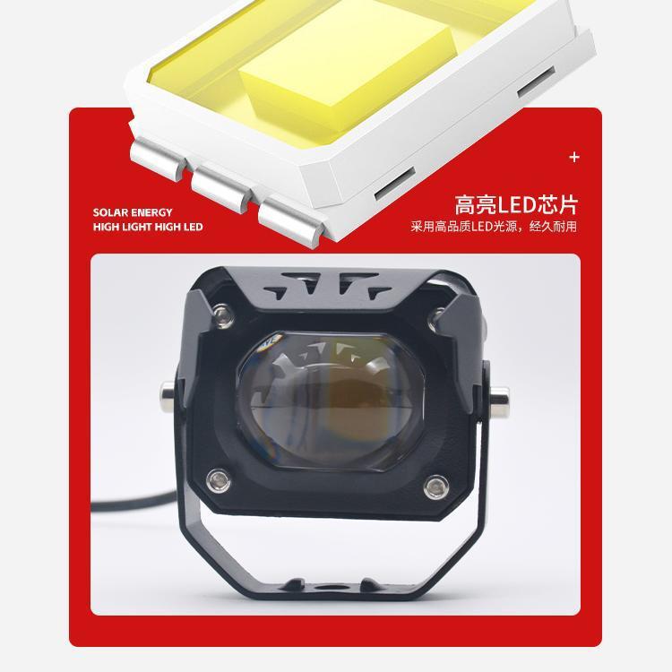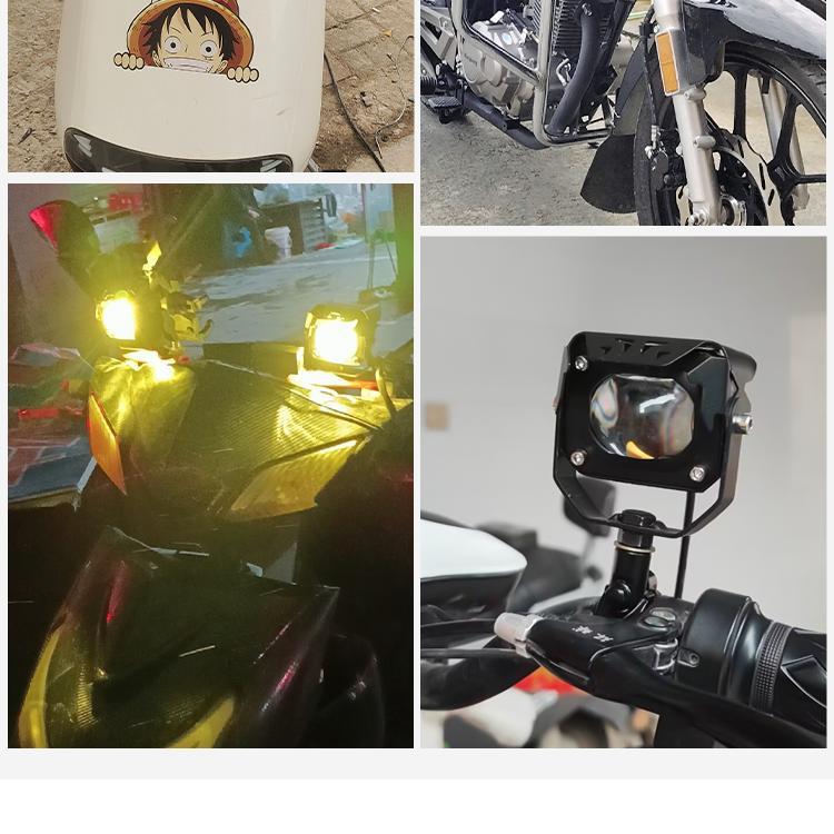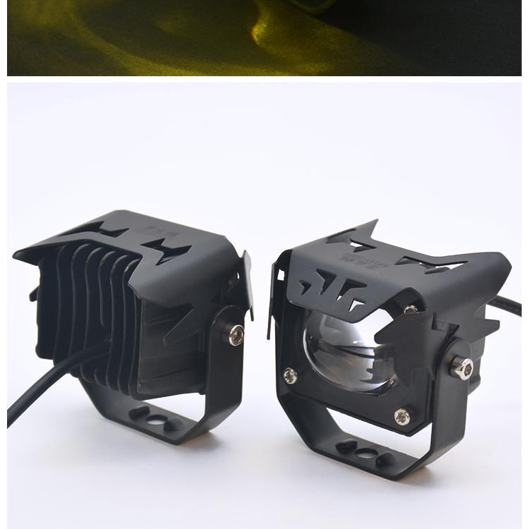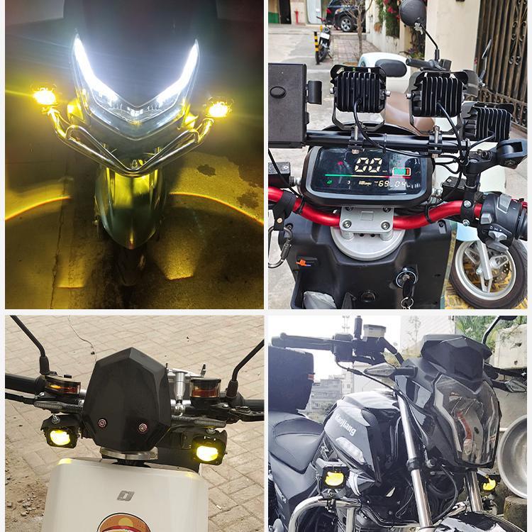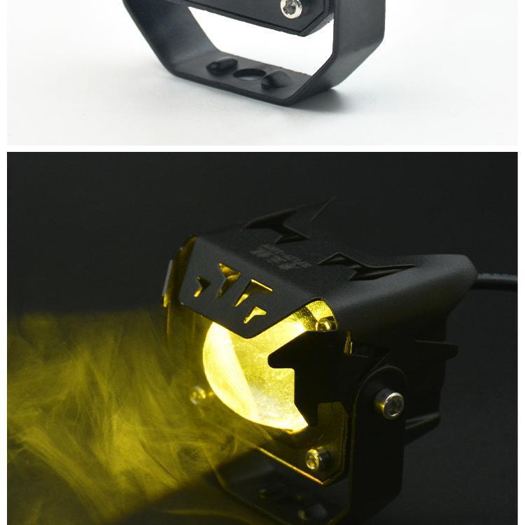 Lente de motocicleta LED blanco y amarillo con foco cercano y lejano cañón de acero para coche batería externa