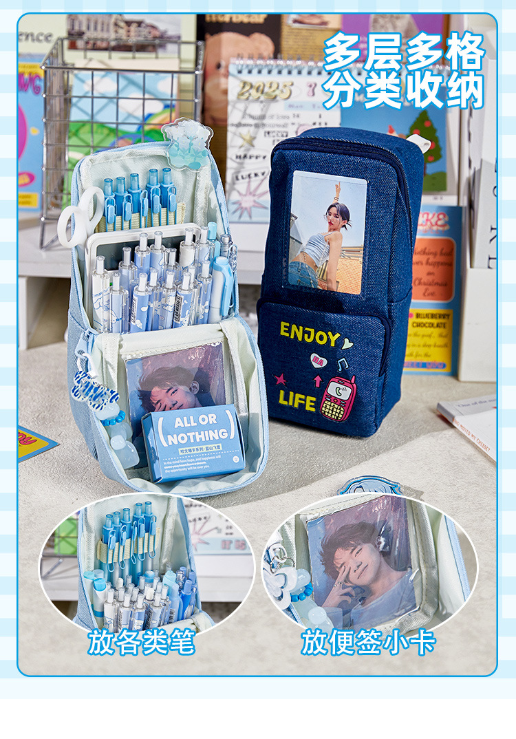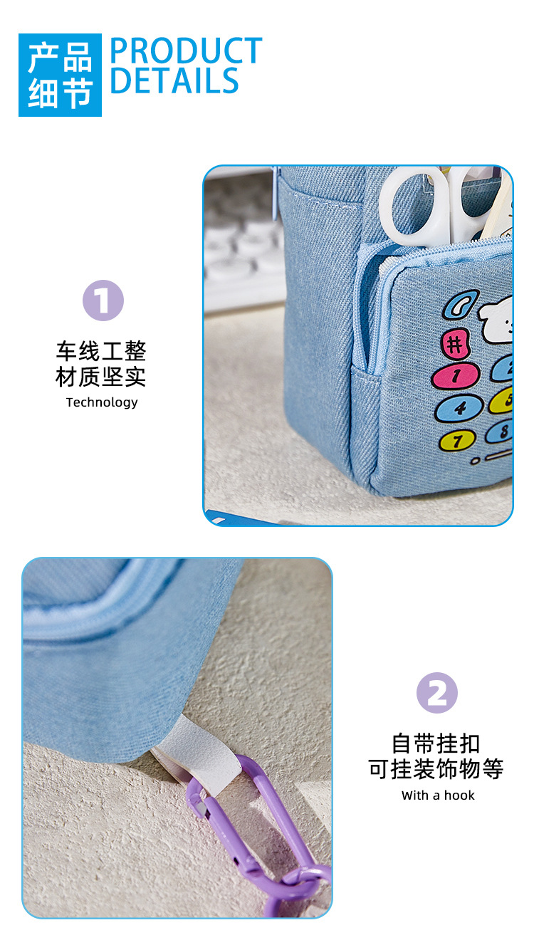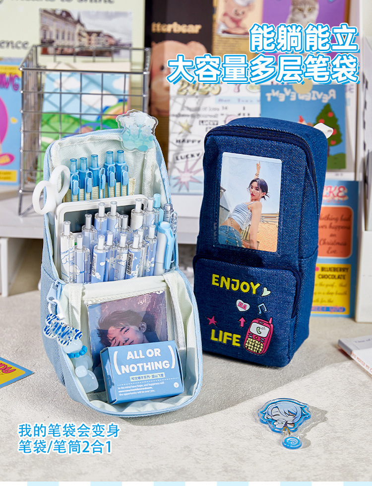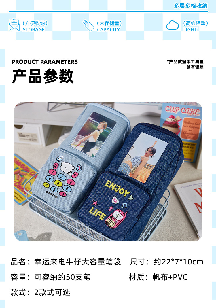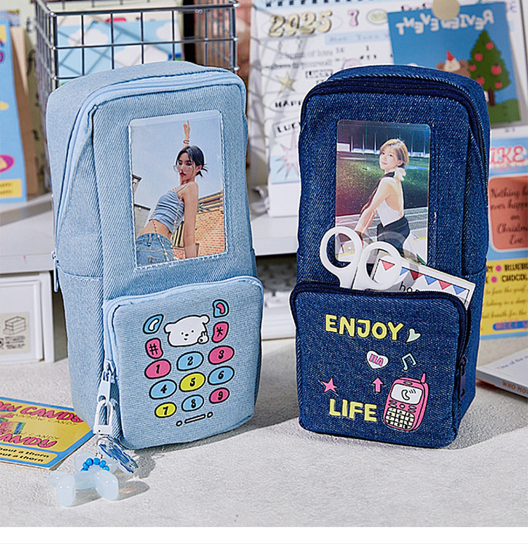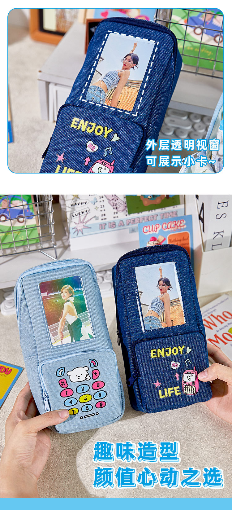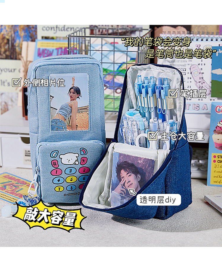 El nuevo estuche para lápices de llamada entrante de mezclilla de la suerte, modelo de nicho, estuche para lápices universal de gran capacidad, estuche para papelería, portalápices, dos en uno