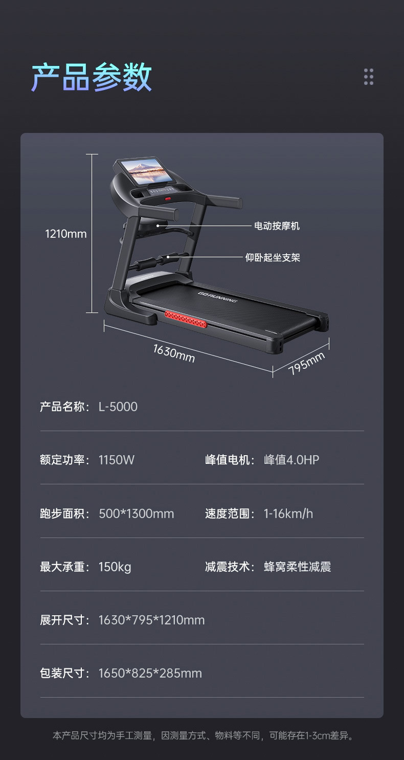 | Área de la cinta de correr (largo * ancho) | 500*1300mm |