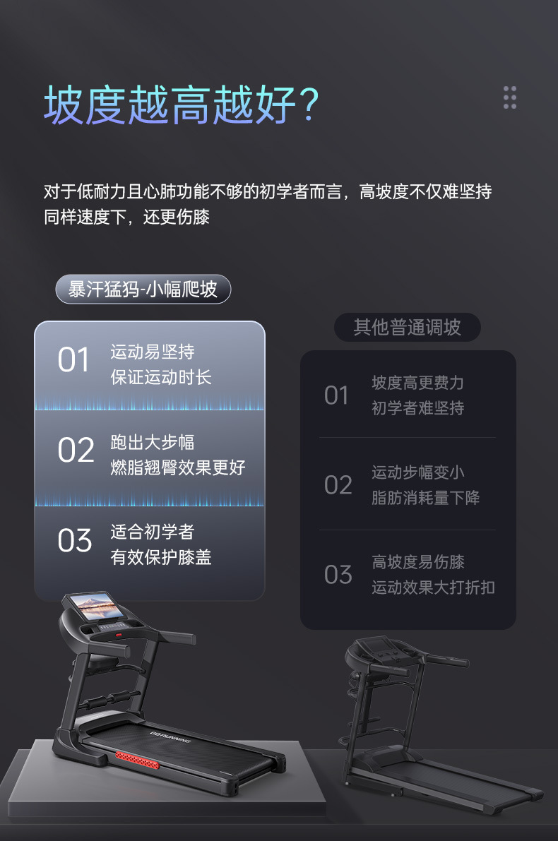 | Programa de movimiento | Manual,Pérdida de peso,Quema de grasa,Escalada,Subidas y bajadas,Intermitentes,Correr en pendiente |