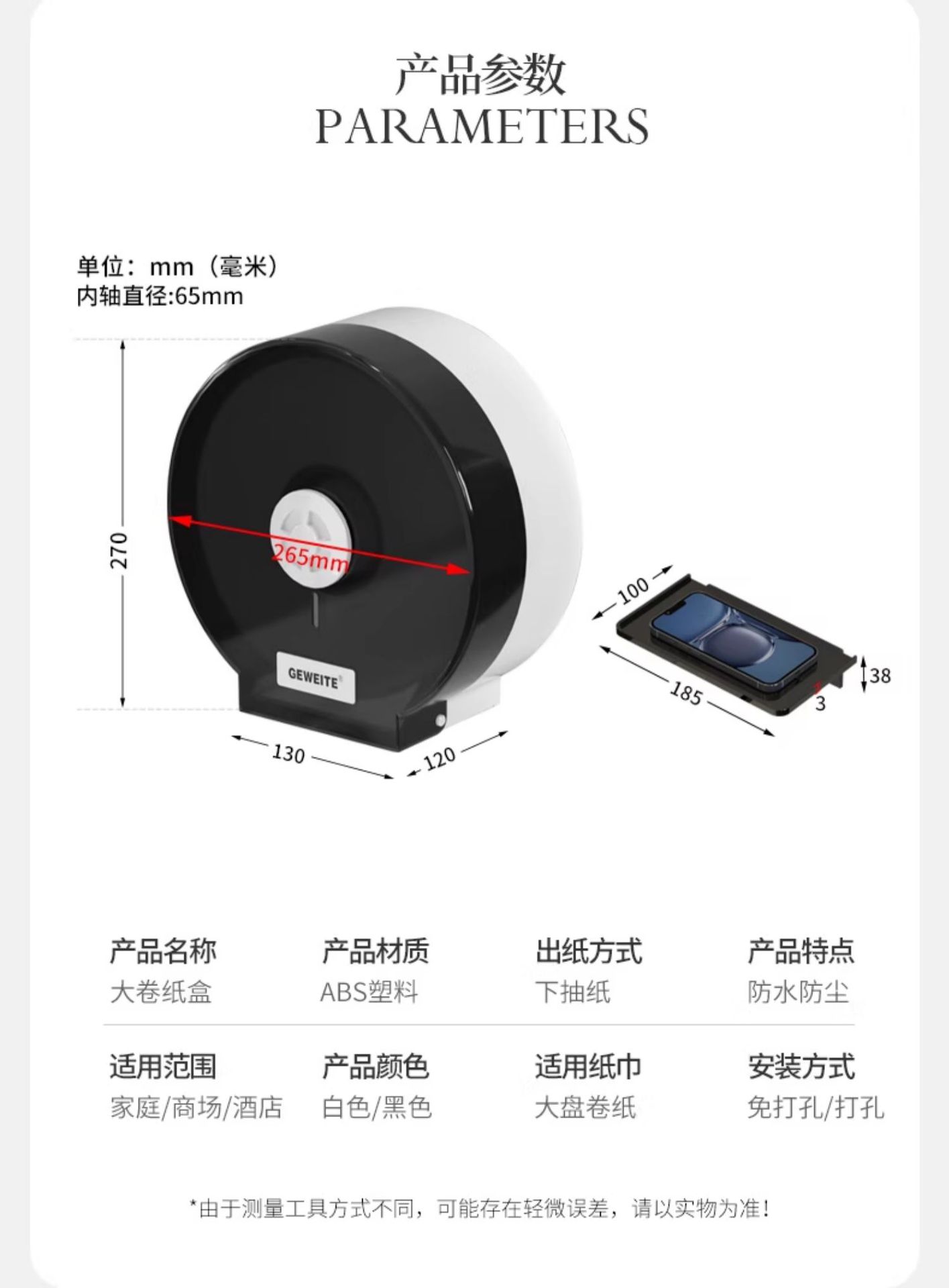 | Colores | Caja de pañuelos negros-sin mesa de almacenamiento-té negro [instalación perforada/sin clavos],Caja de pañuelos negros con mesa de almacenamiento-té negro [instalación perforada/sin clavos],Caja de pañuelos blancos sin mesa de almacenamiento [instalación perforada/sin clavos],Caja de pañuelos blancos con mesa de almacenamiento [instalación perforada/sin clavos],Estante a juego --- té negro [sin perforación],Estante a juego-blanco [sin perforación] |