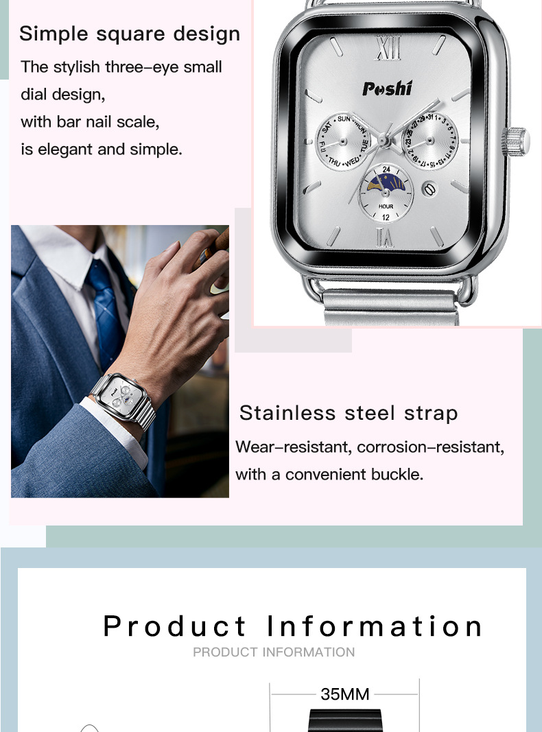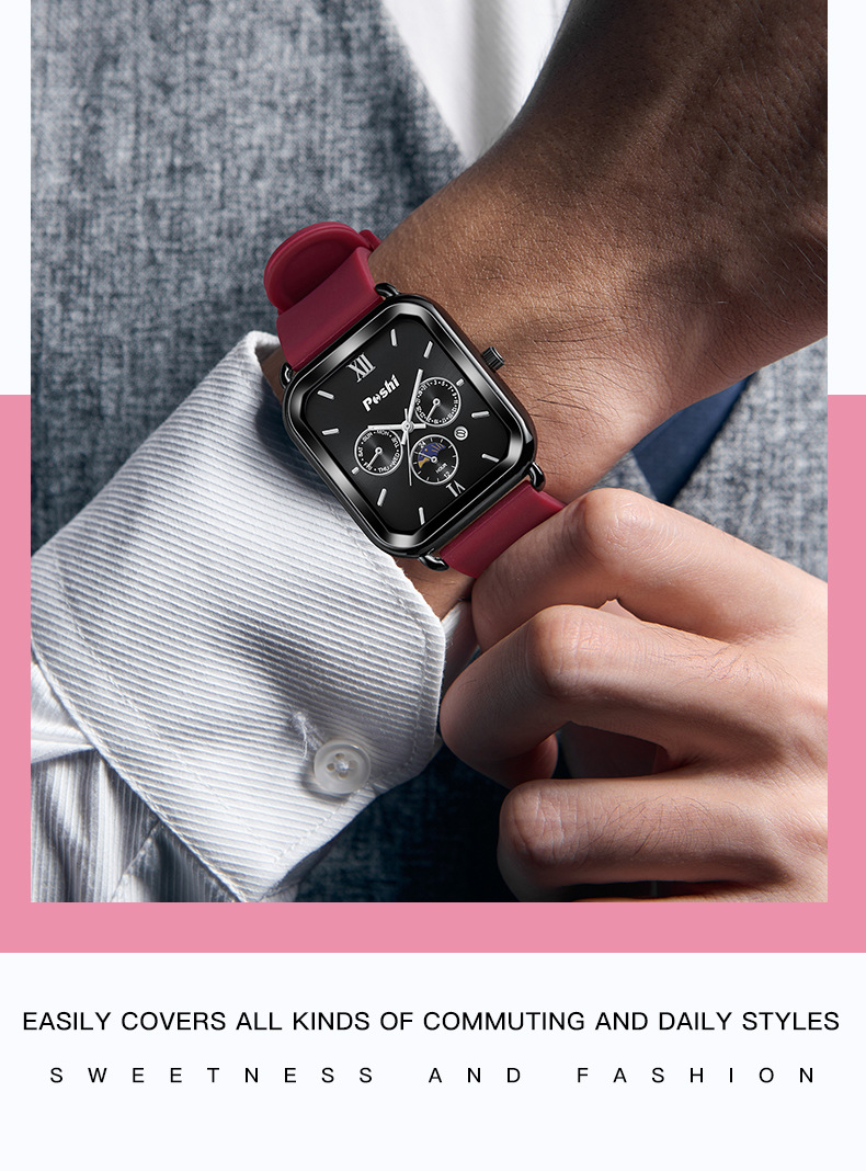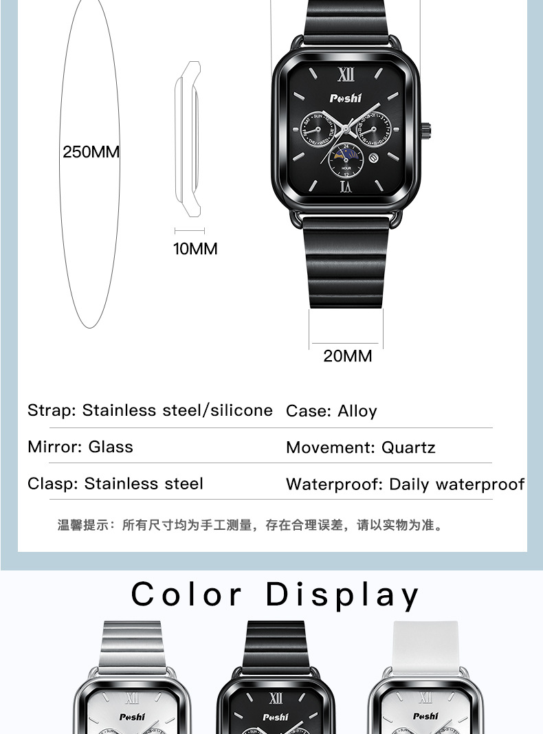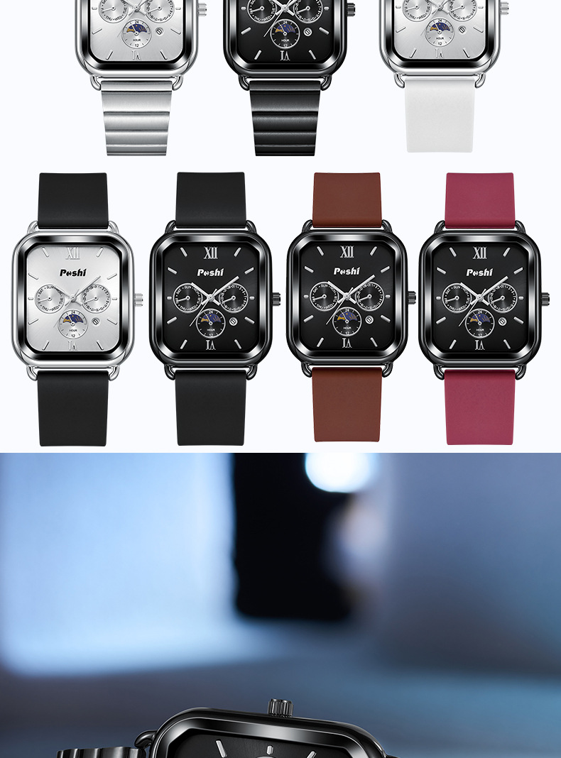| Colores | Cinturón de acero-todo negro,Cinturón de acero-blanco plateado,Cinta de silicona-Cinta negra con carcasa plateada,Cinta de silicona-marrón,Cinta de silicona-blanco,Cinta de silicona-rojo vino,Cinta de silicona-todo negro |