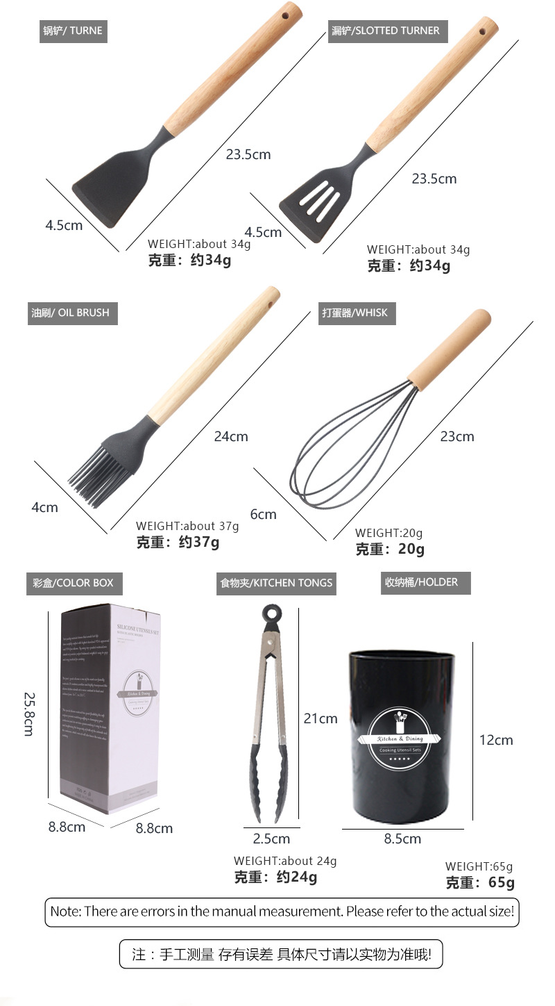 | Tamaño | Utensilios de cocina negra de 12 piezas 500g (con barril),Juego de utensilios de cocina gris oscuro de 12 piezas 500g (con barril),Utensilios de cocina verde claro juego de 12 piezas 500g (con barril),Utensilios de cocina rosa de 12 piezas 500g (con barril) |