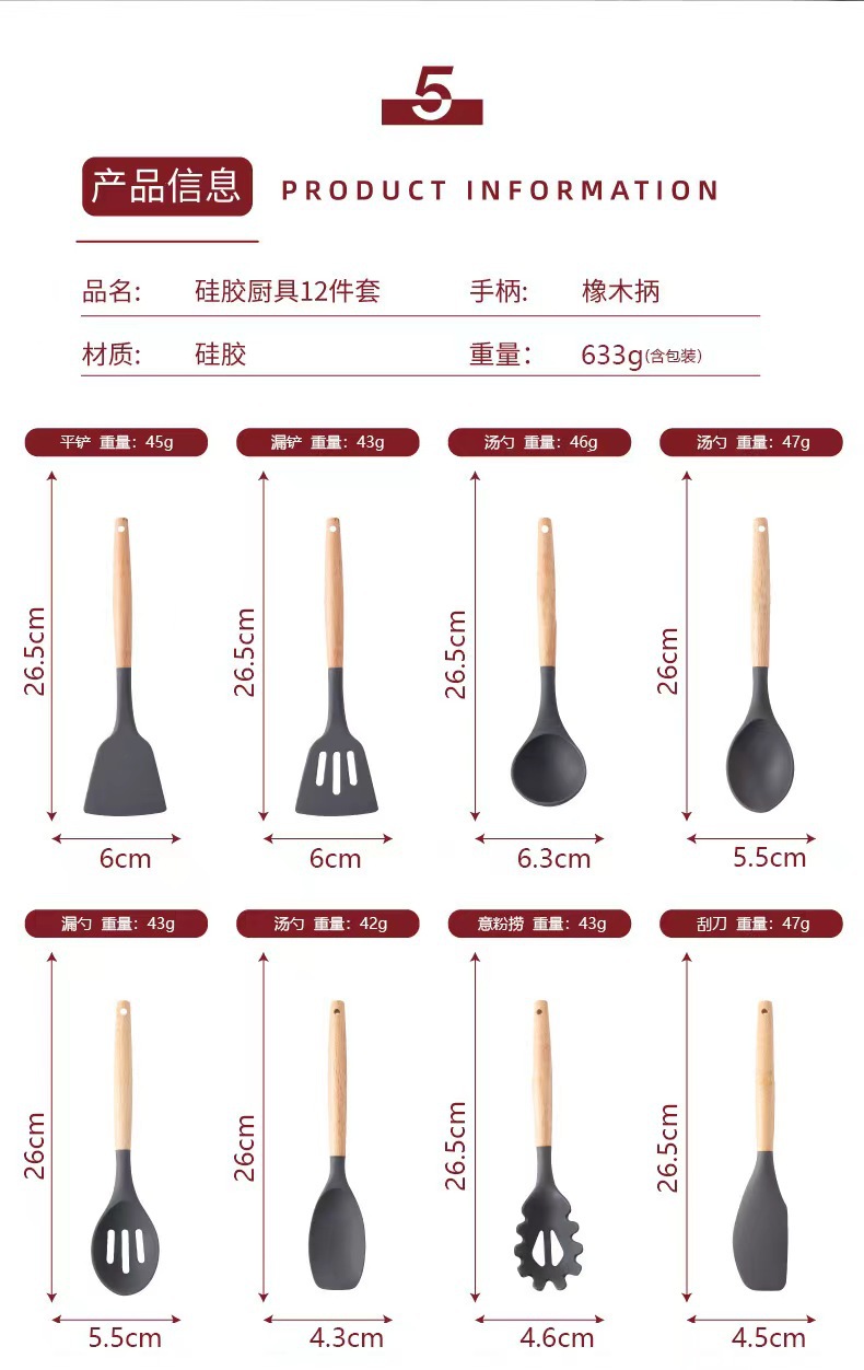 | Tamaño | Rojo (12 piezas de mango de madera de silicona),Gris (juego de 12 piezas con mango de madera de silicona),Negro (juego de 12 piezas con mango de madera de silicona),Verde claro (juego de 12 piezas con mango de madera de silicona),Verde (juego de 12 piezas con mango de madera de silicona),Blanco lechoso (juego de 12 piezas con mango de madera de silicona),Caqui (juego de 12 piezas con mango de madera de silicona),Rosa (juego de 12 piezas con mango de madera de silicona) |