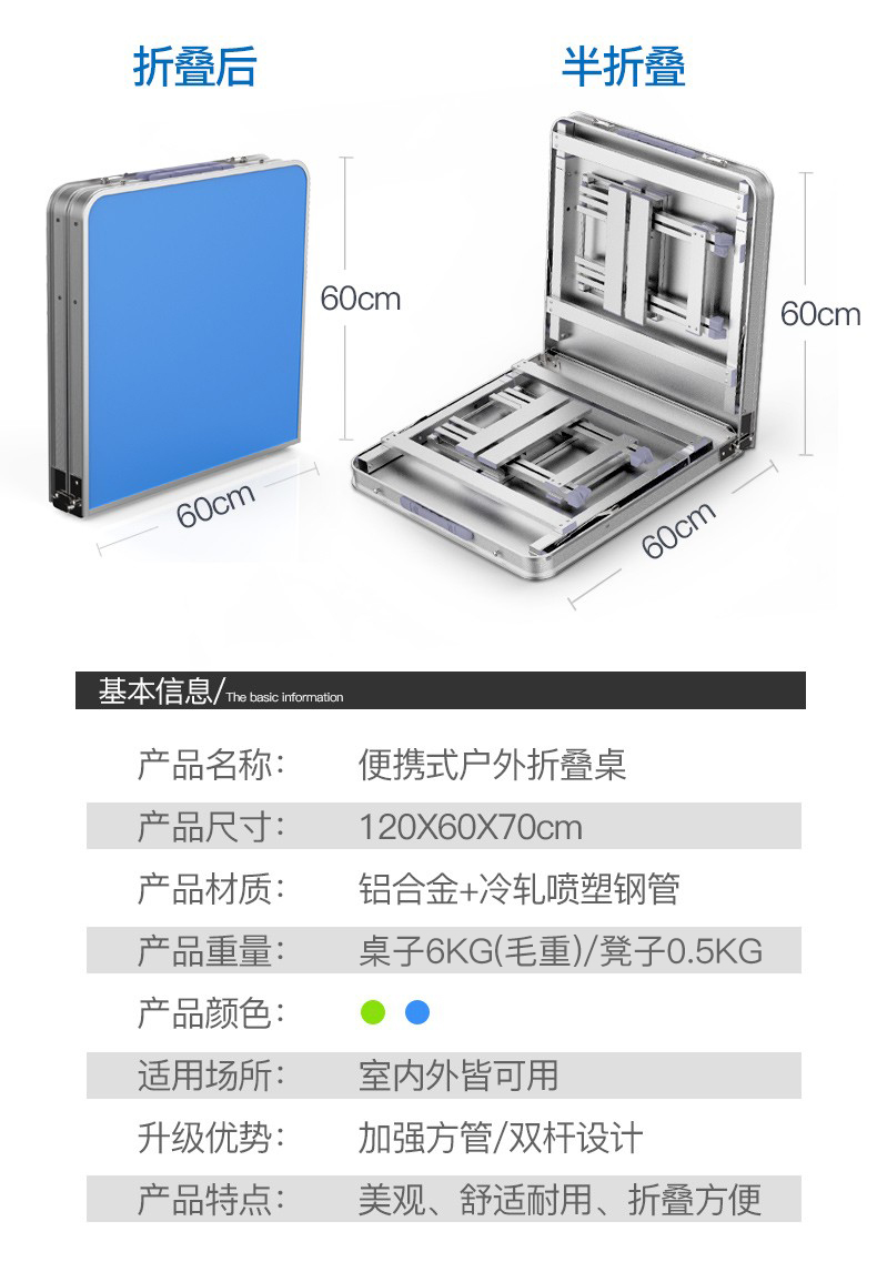 Mesa plegable, puesto en el mercado nocturno, mesa plegable al aire libre, mesa de comedor plegable para el hogar, puesto portátil, pony