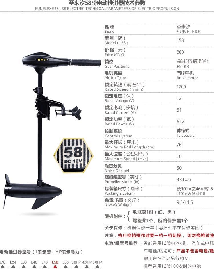| Especificaciones | 12 voltios 18 libras de agua dulce,12 voltios 26 libras de agua dulce,12 voltios 30 libras de agua dulce,12 voltios 40 libras de agua dulce,12 voltios 48 libras de agua dulce,12 voltios 58 libras de agua dulce,12 voltios 66 libras de agua dulce,24 voltios 86 libras de agua dulce,12 voltios 58 libras de agua de mar,12 voltios 66 libras de agua de mar,24 voltios 86 libras de agua de mar,Eje corto de 60V 10 HP |
