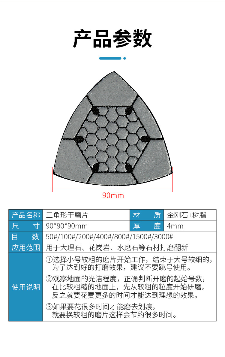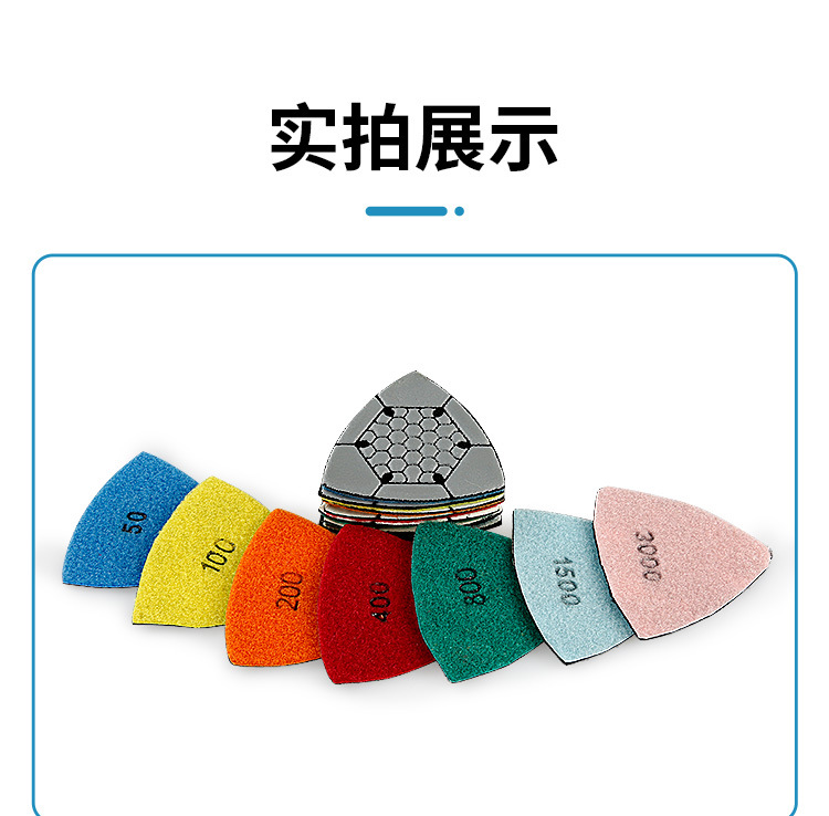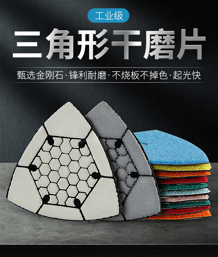 Diamante pieza de molienda en seco triángulo mármol piedra de cuarzo granito pulido y pulido universal tesoro piedra pieza de pulido en seco