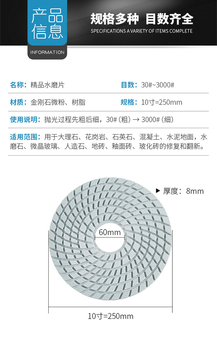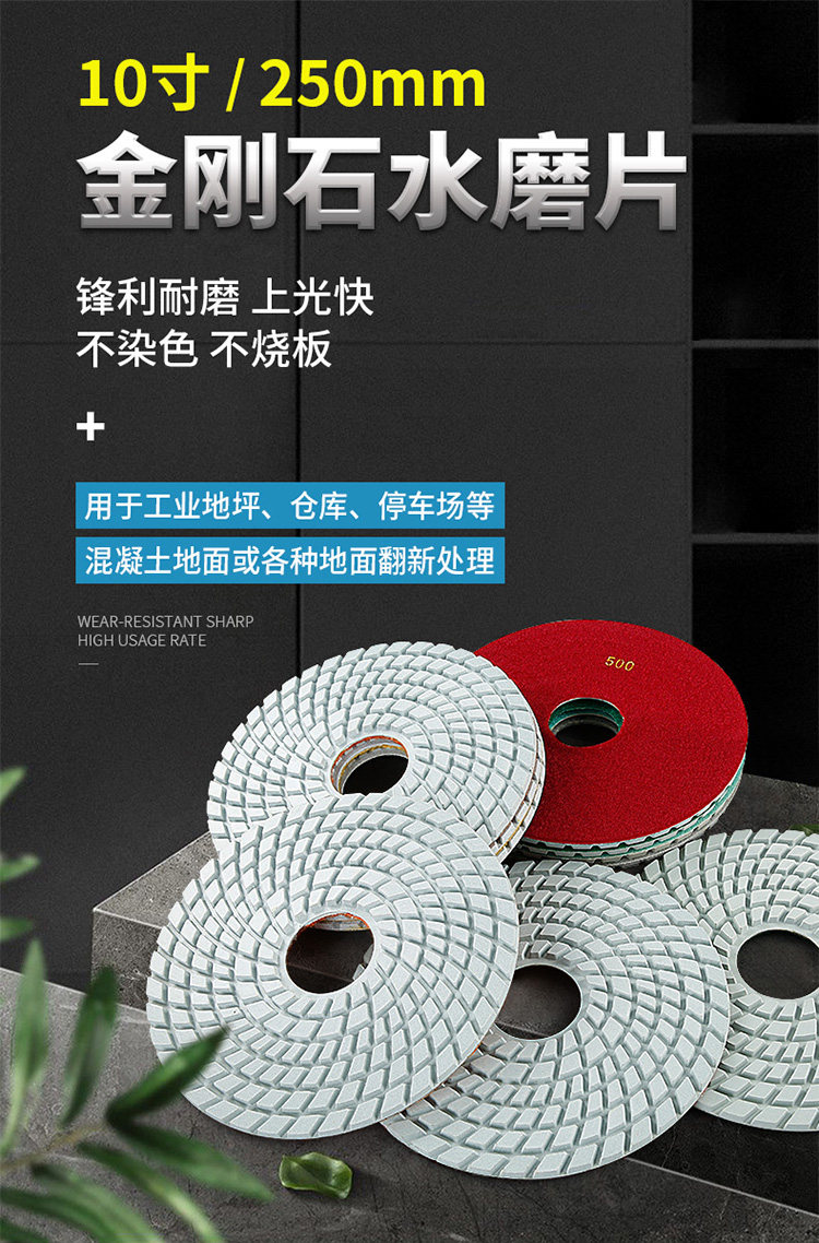 10 pulgadas 250mm máquina de pulir de agua hoja de pulido mármol granito agua molienda piedra piso renovación hoja de pulido