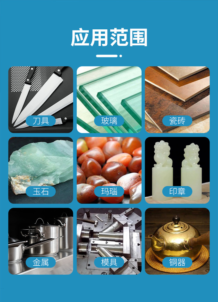 | Objeto de procesamiento | Metales, azulejos, jade, vidrio, sello, sello |