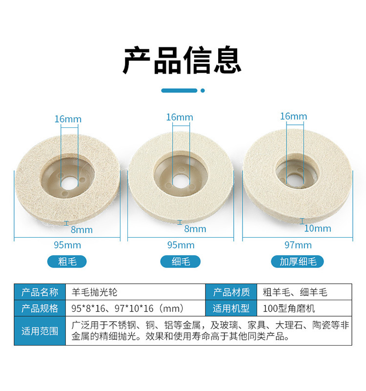 Rueda de lana Rueda de pulido de espejo Bola de lana Espesar Amoladora angular Vidrio pulido Metal Acero inoxidable Piedra Pulido