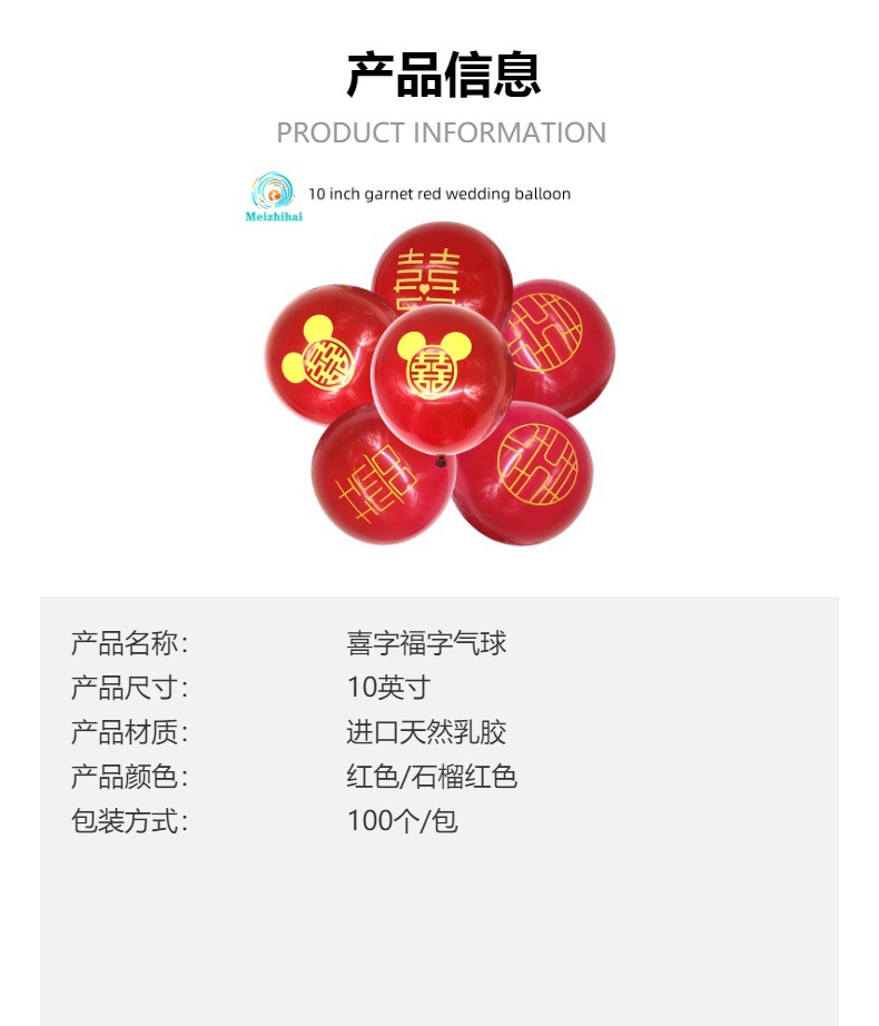 | Tamaño | Rojo (Fangyuan Xizi) 10 pulgadas/100 piezas/paquete,Rojo (Plum Blossom Xizi) 10 pulgadas/100 piezas/paquete,Rojo (carácter eterno) 10 pulgadas/100 piezas/paquete,Rojo (amor y alegría) 10 pulgadas/100 piezas/paquete,Rojo (personaje feliz en inglés) 10 pulgadas/100 piezas/paquete,Rojo (Yuanxi) 10 pulgadas/100 piezas/paquete,Rojo granada (Yuanxi) 10 pulgadas/100 piezas/paquete,Rojo granada (personaje feliz en inglés) 10 pulgadas/100 pcs/paquete,Rojo granada (Mickey Xi) 10 pulgadas/100 pis/paquete,Rojo granada (doble felicidad) 10 pulgadas/100 piezas/paquete,Globo Fu Zi (rojo) 10 pulgadas/100 pc/paquete,Feliz mudanza a un nuevo hogar (rojo) 10 pulgadas/100 piezas/paquete,Feliz inauguración de la casa (rojo) 10 pulgadas/100 piezas/paquete |