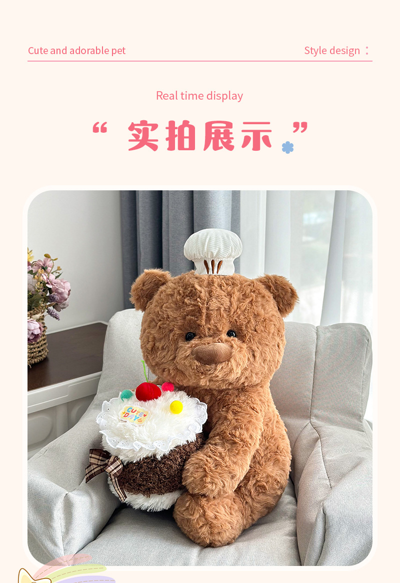 | Colores | Abrazo pastel oso tamaño 23cm sin sombrero,Cake Bear 41cm tamaño con gorra,Cake Bear 51cm tamaño con gorra |