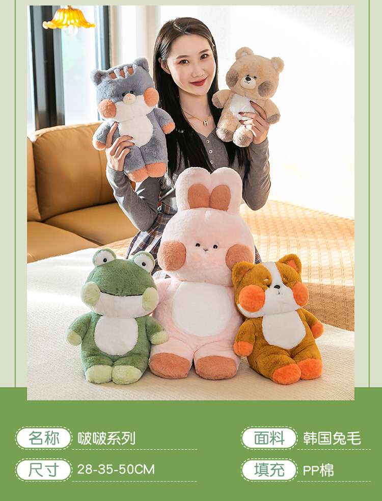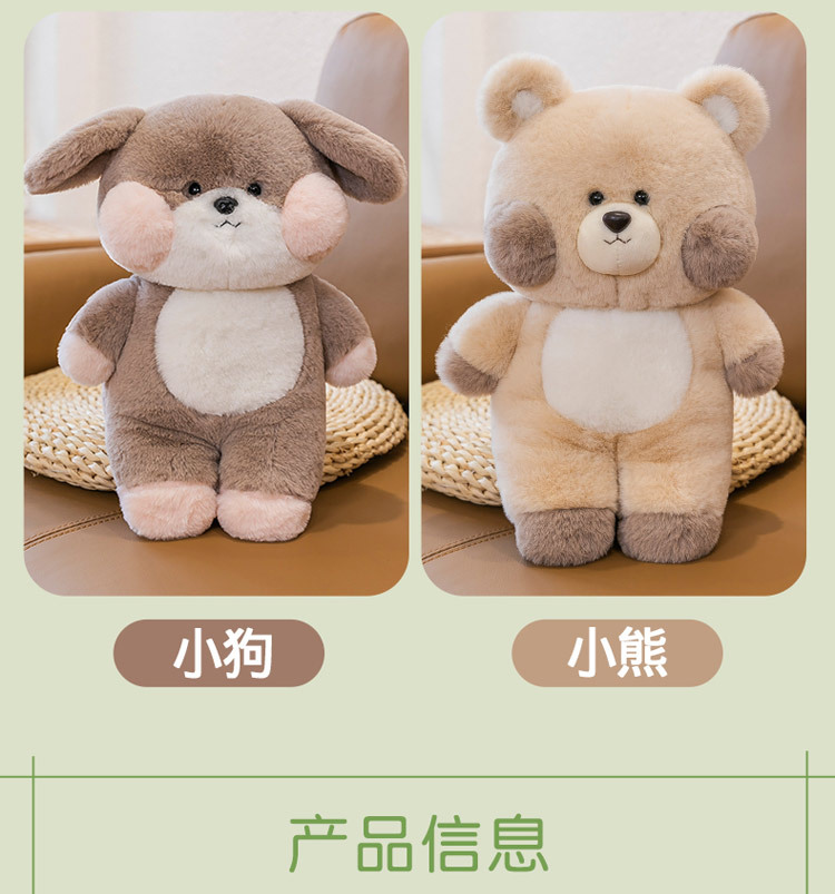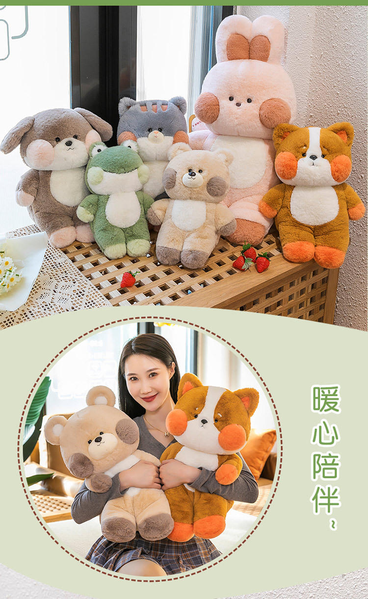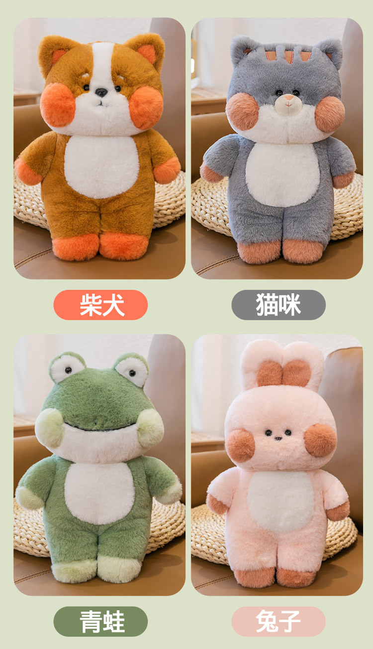 | Color | Conejo rosa,Bebé Gato,Oso,Información sobre Shiba inu,Rana,Teddy perro |