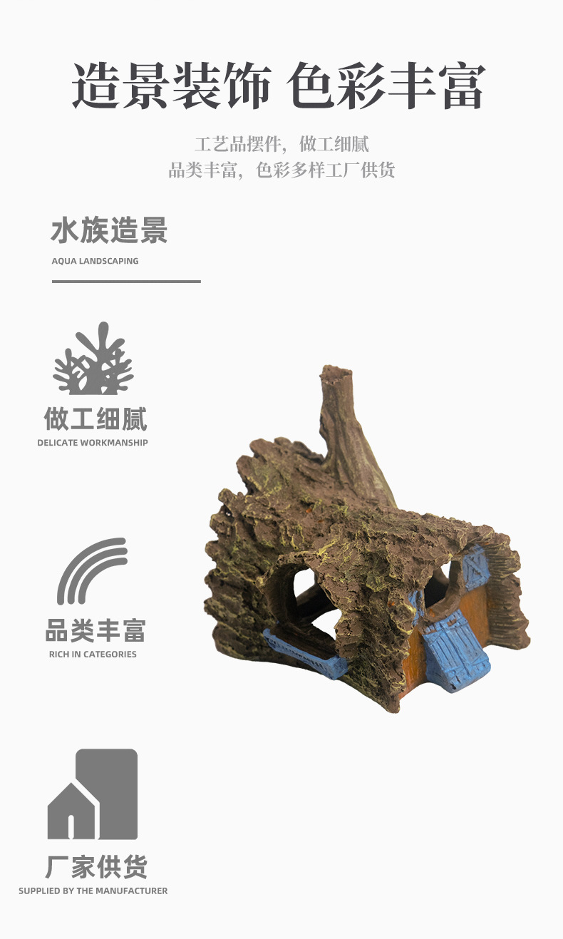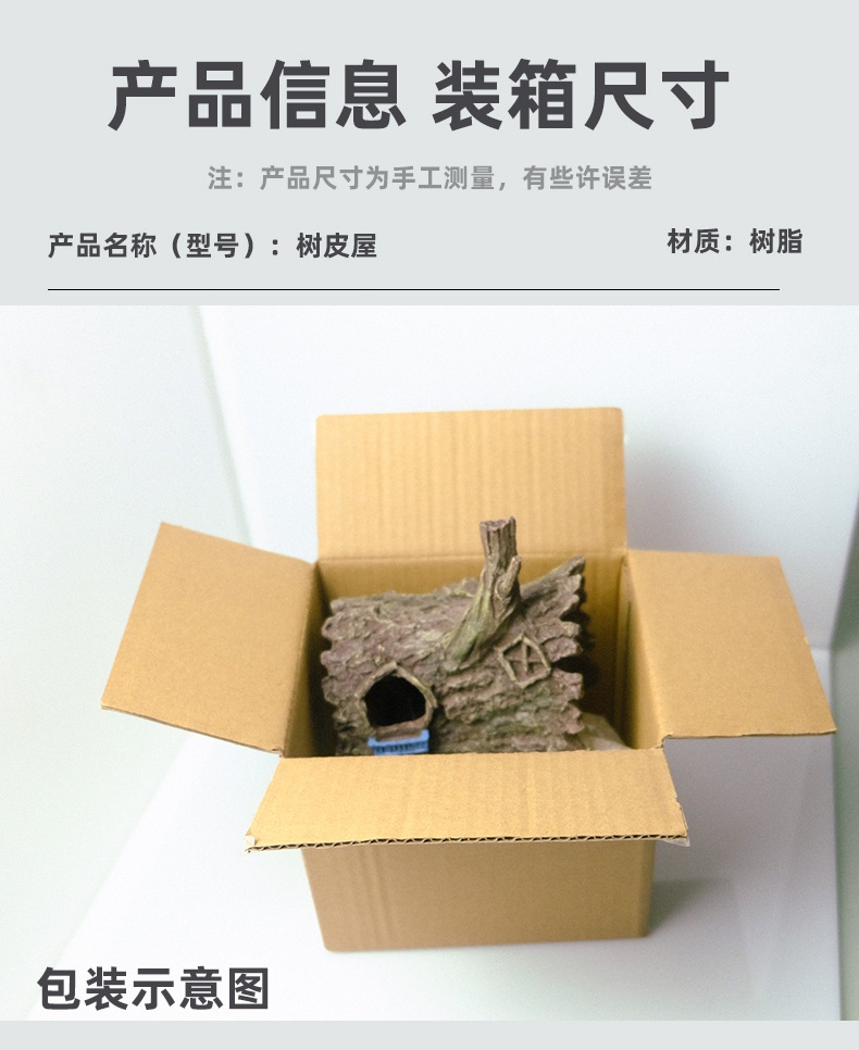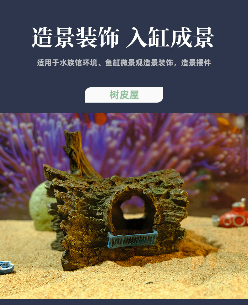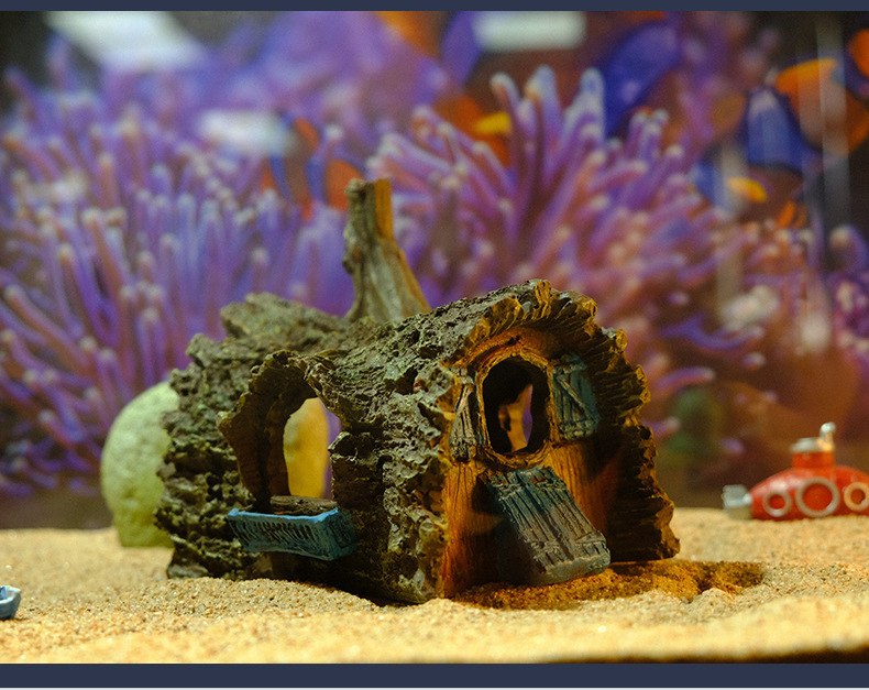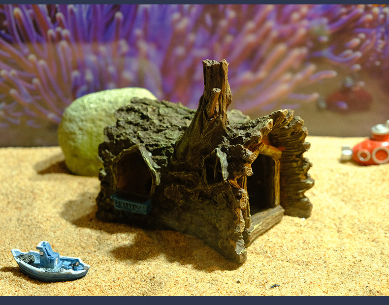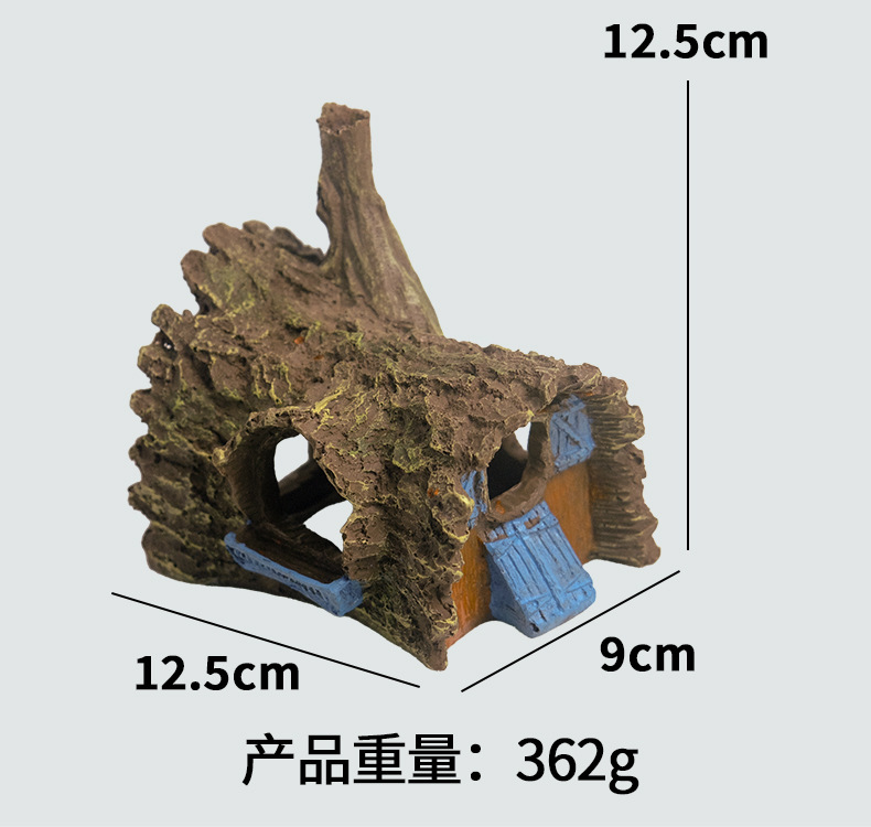 Adornos decorativos de resina para peceras, casa de escondite para peces pequeños, decoración de paisajismo, casa de corteza, cueva, escondite para reptiles, agujero de árbol, transfronterizo
