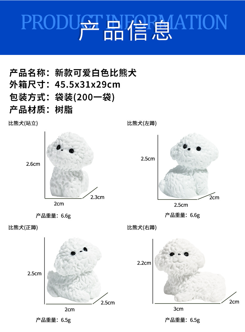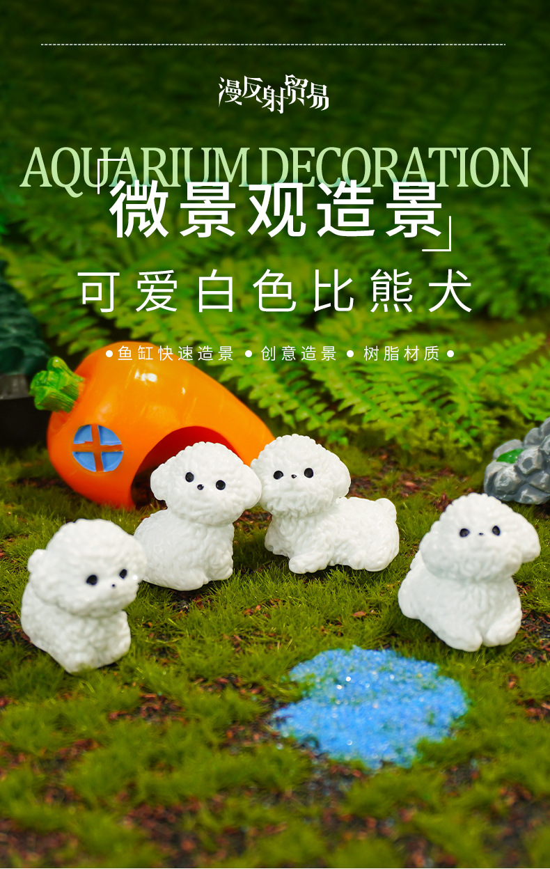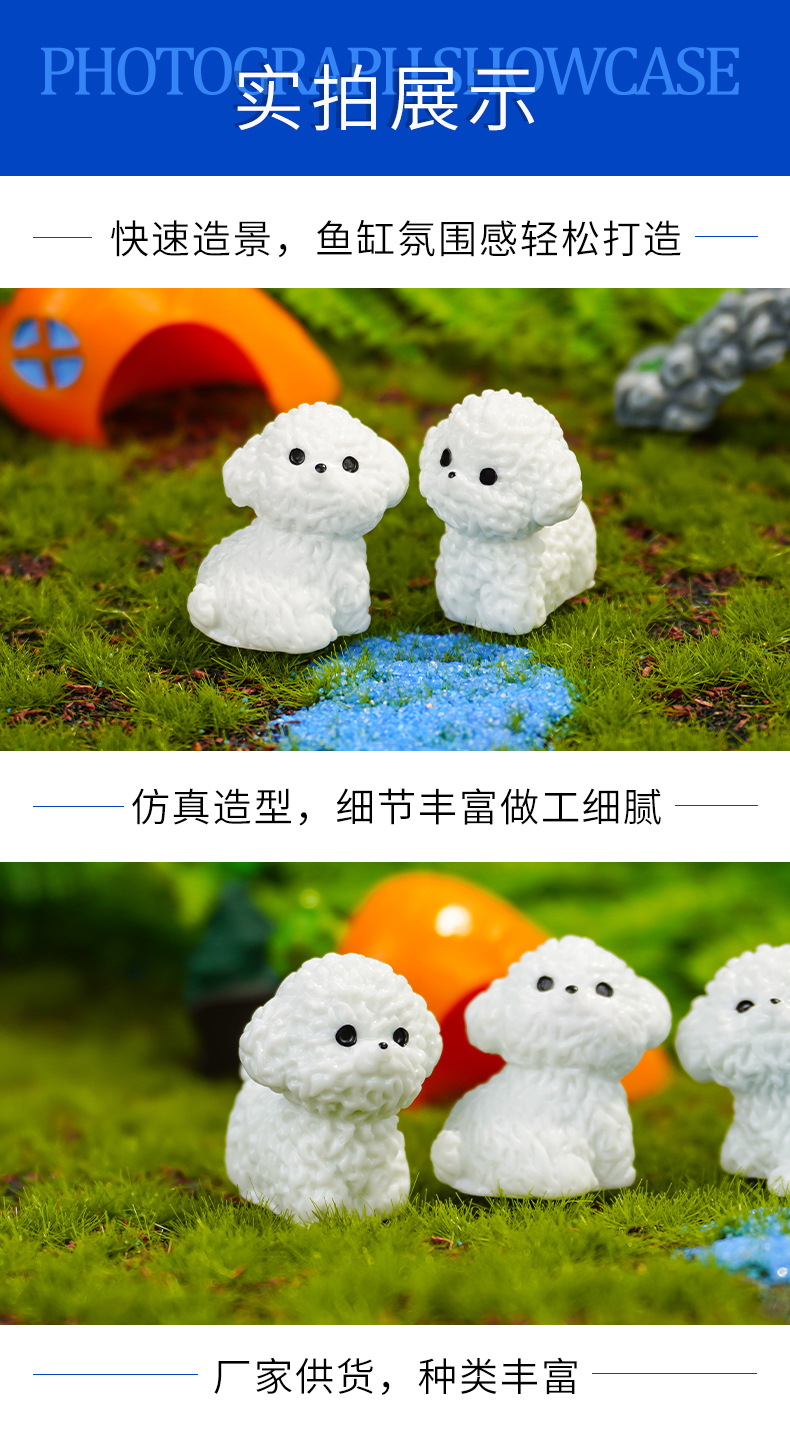 Lindo bichon blanco micro-paisaje en maceta nuevo paisaje pequeño adornos decoración de la consola central del coche accesorios de bricolaje