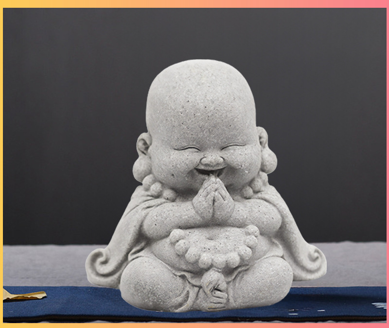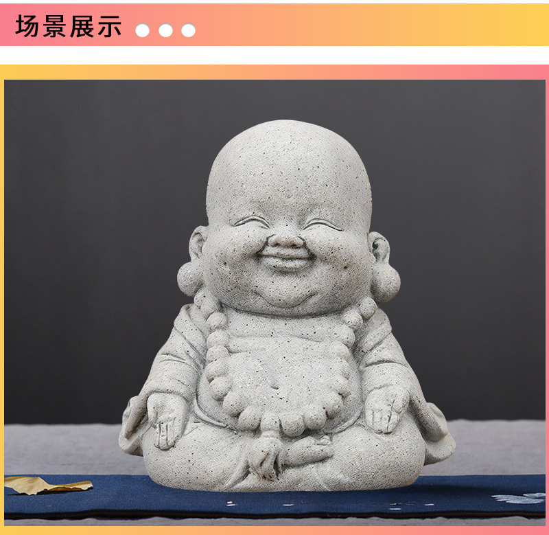 Arena verde piedra pequeño monje creativo pequeño monje decoración Zen decoración del hogar juego de té decoración de té mascota lindo Maitreya