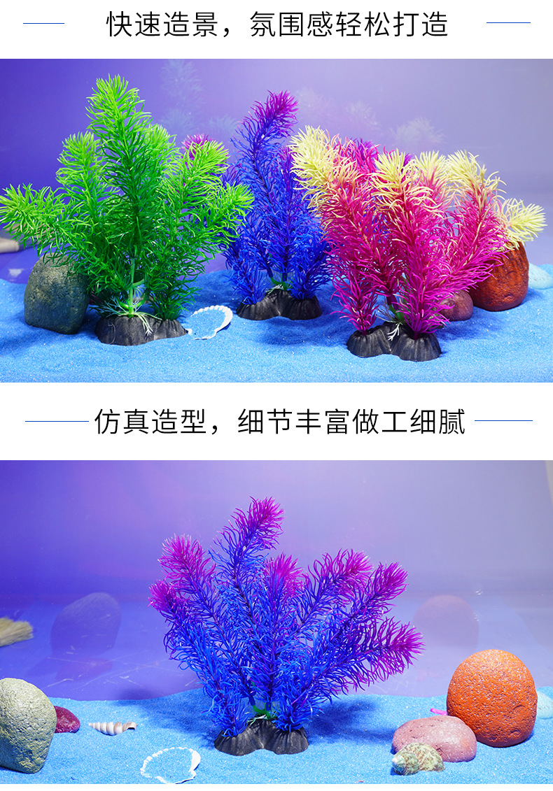 Simulación de plantas acuáticas, flores falsas, acuario, paisaje, algas de hoja de cedro, venta directa de fábrica, pecera al por mayor, caja de arena, plástico decorativo