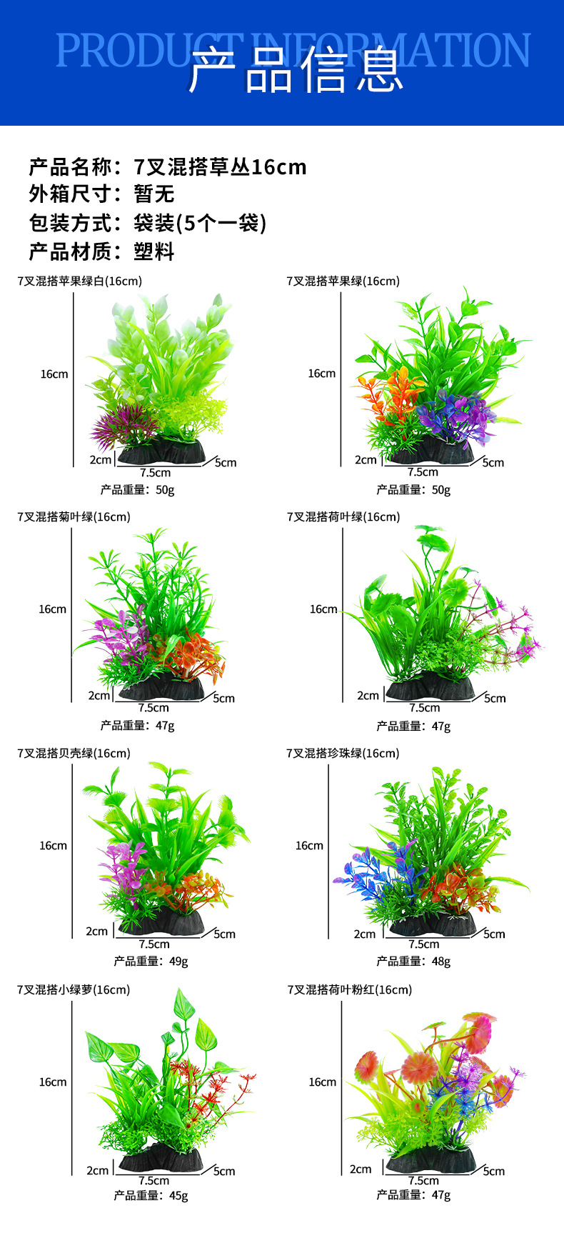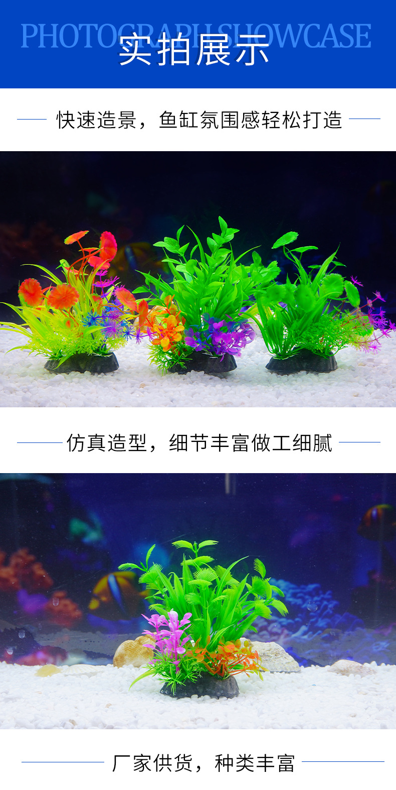 Planta de simulación decorativa acuario fábrica de artesanías de plantas al por mayor pecera paisajismo planta de acuario de plástico