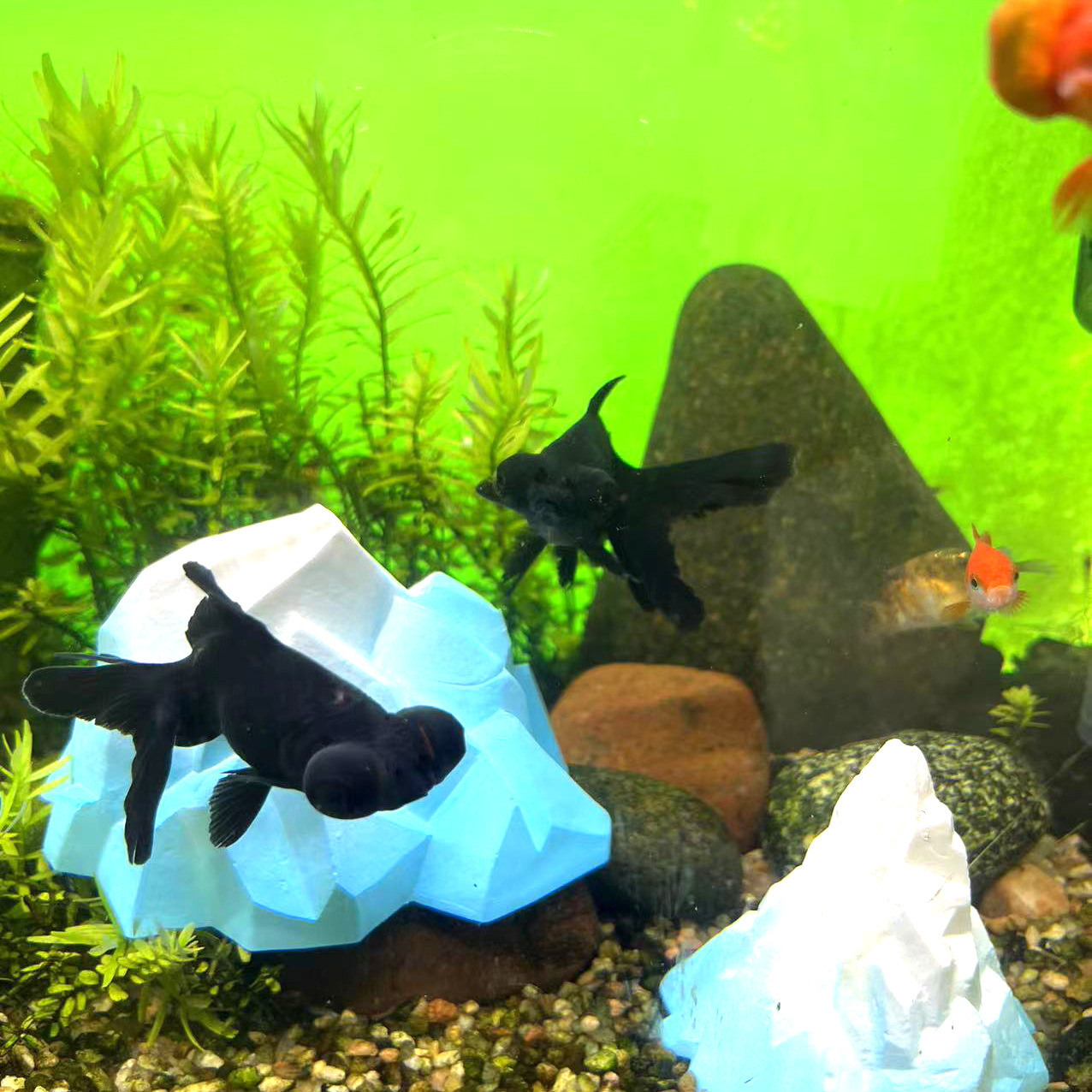 Venta caliente pecera planta en maceta paisajismo cabeza de guijarros fondo de resina azul arena piedra vidriada piedra fábrica spot pelo directo