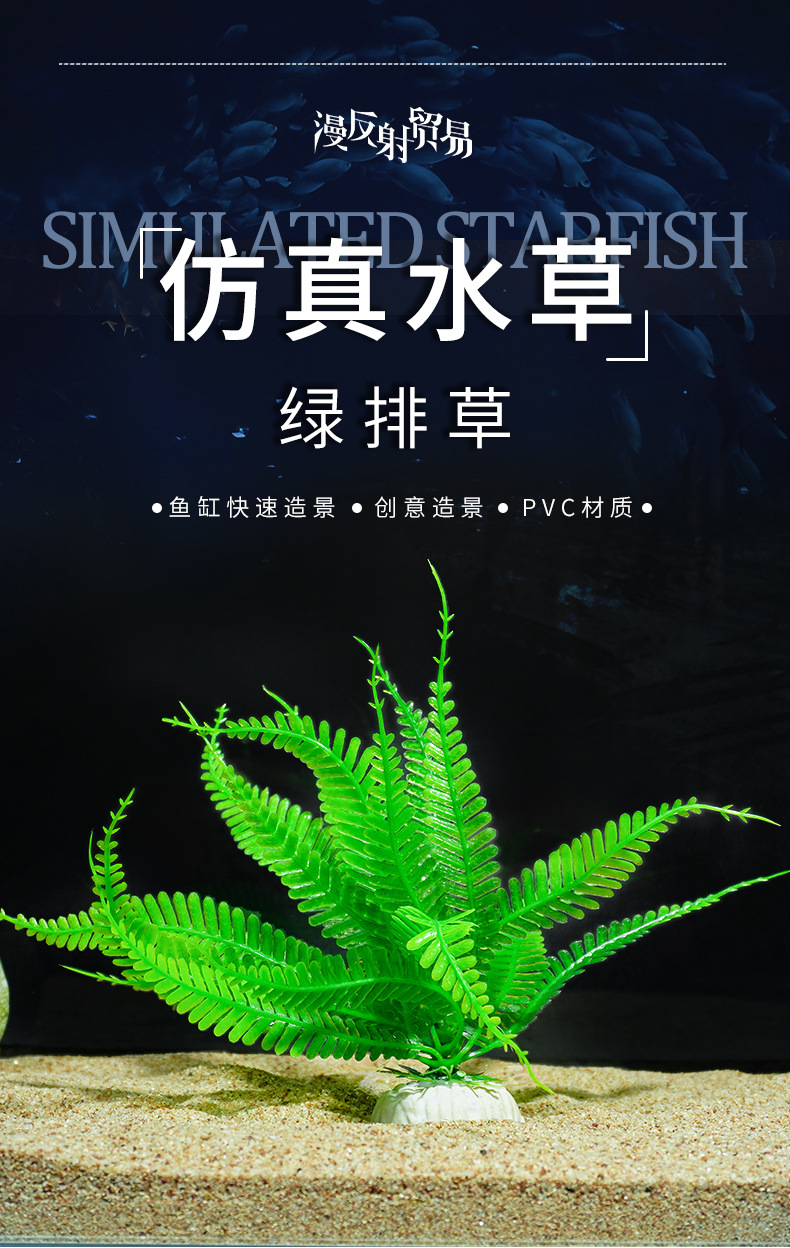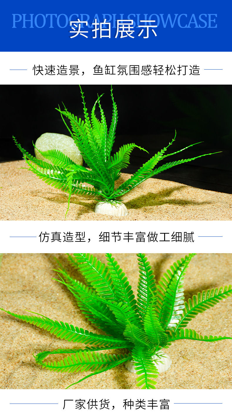 Pecera Decoración Planta Flor de plástico Flor falsa Pecera Paisaje Hoja de bambú Simulación al por mayor Agua de hierba Hotel Decoración de mesa de arena