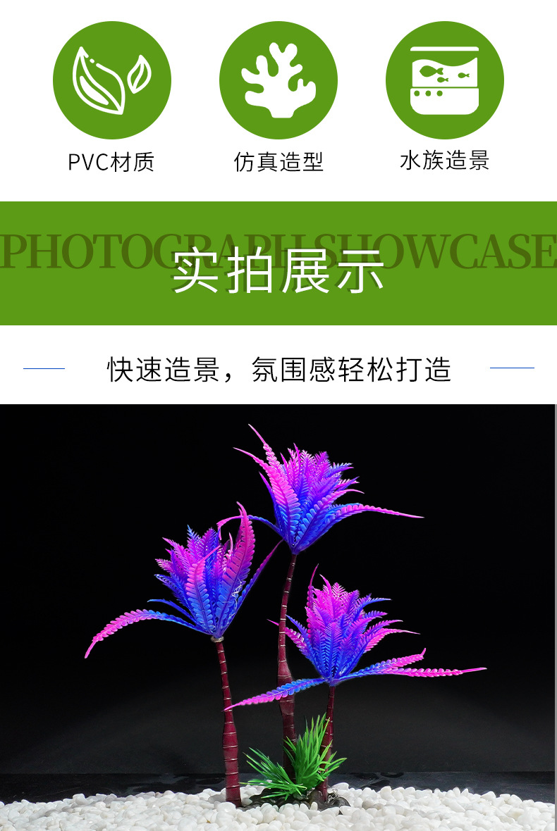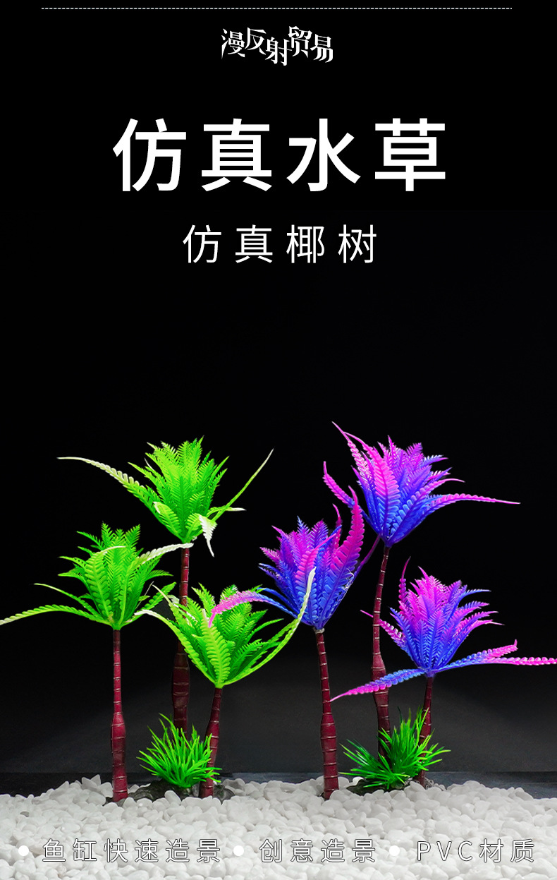 Simulación acuario acuario acuario paisajismo decoración plástico hierba simulación cocotero caja de reptil planta de paisajismo de eneldo verde