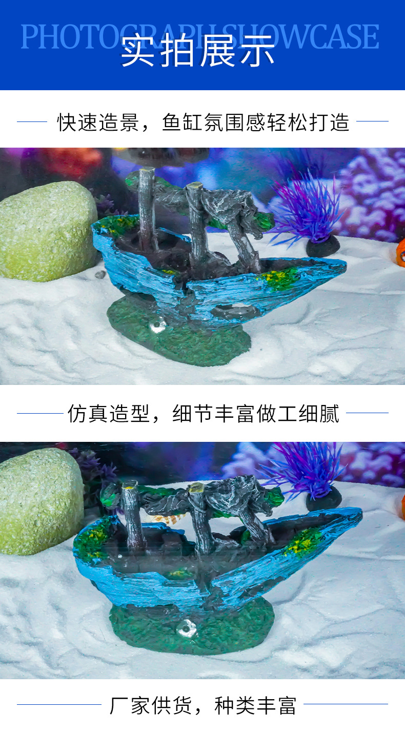 Barco de simulación, peces y camarones, casa de esquivar el paisaje de la pecera, decoración de la pecera de la cueva, decoración de la pecera, acuario, naufragio roto