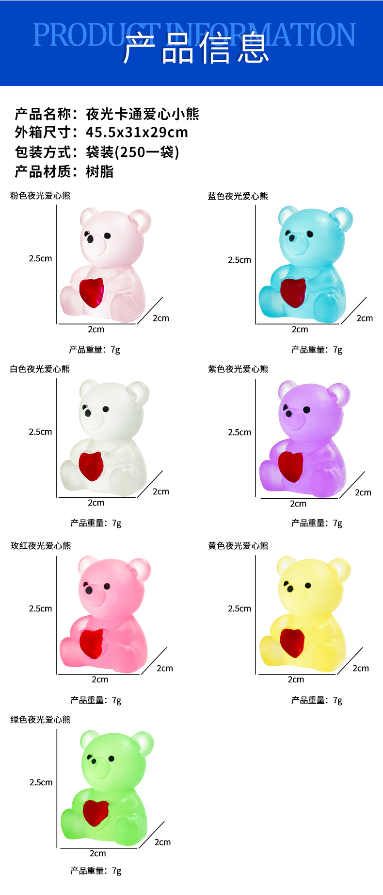 | Colores | Oso amoroso luminoso rosa,Oso de amor luminoso azul,Oso amoroso luminoso blanco,Oso amoroso luminoso púrpura,Oso de amor luminoso rojo rosa,Oso amoroso luminoso amarillo,Oso de amor luminoso verde |