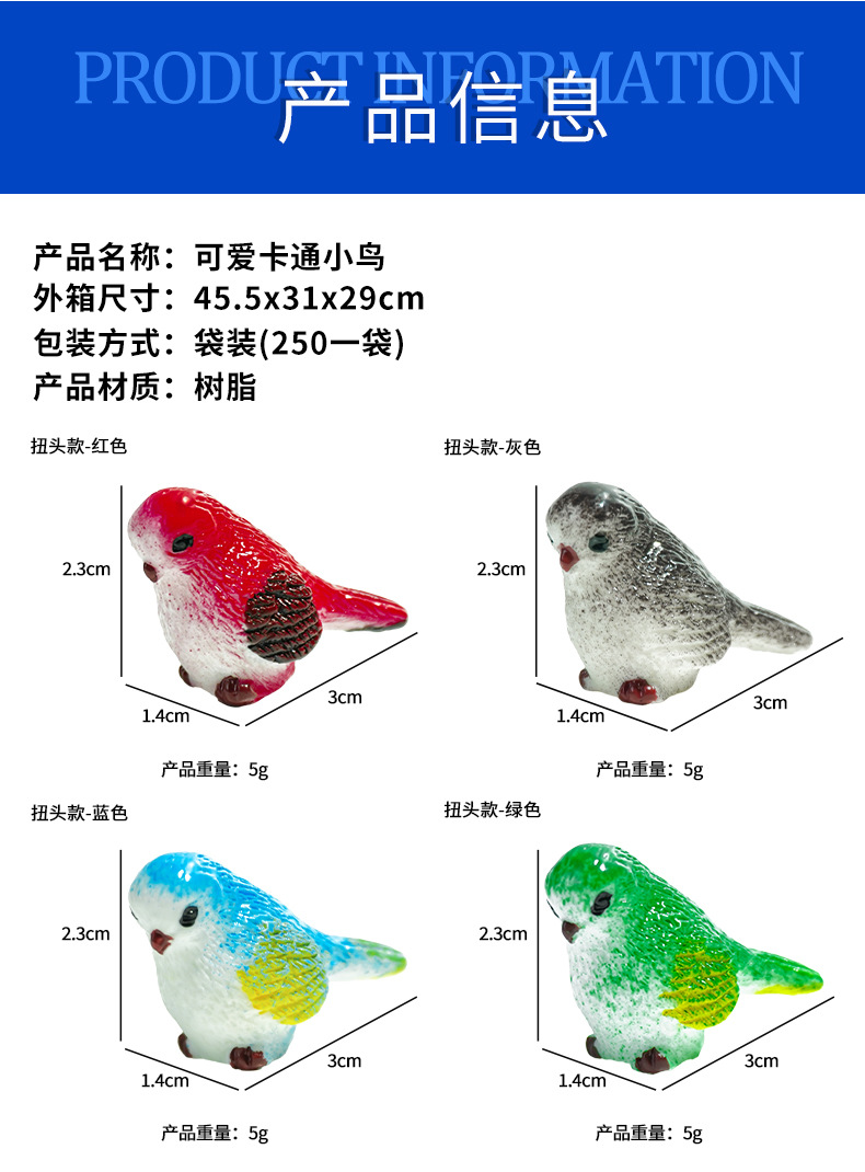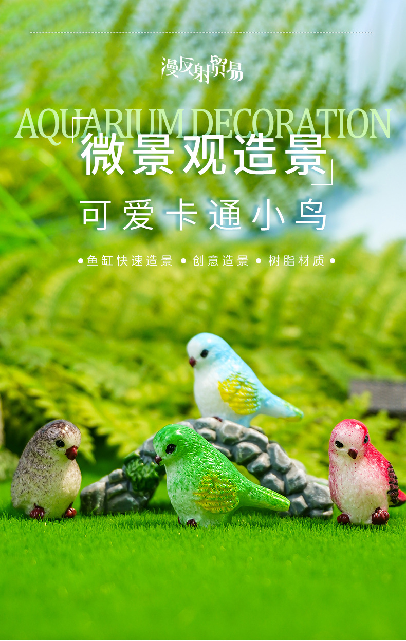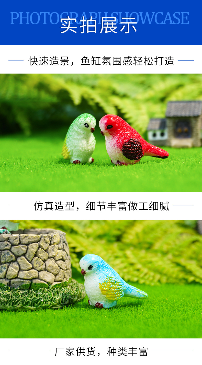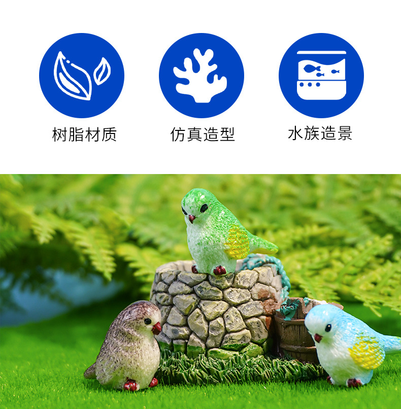 Adornos de pájaros de dibujos animados lindos, micropaisaje de musgo, accesorios carnosos, jardinería, plantas, animales, artesanías, adornos