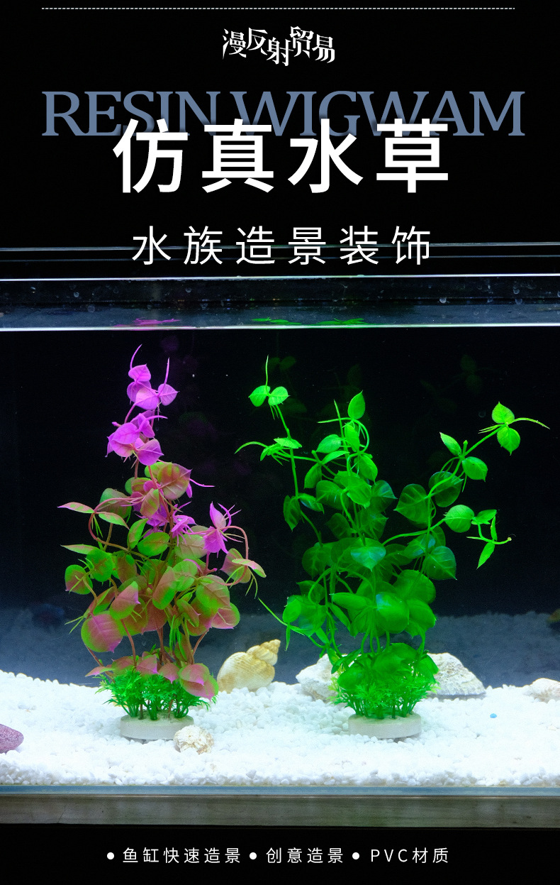 Suministro directo transfronterizo de peceras, decoración de paisajismo, decoración de acuarios, nuevas plantas acuáticas, algas marinas, flores artificiales de plástico