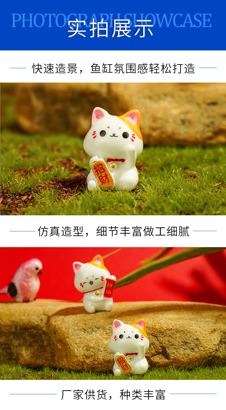 Mini regalos de animales, artesanías, simulación, decoración de escritorio de gato de la suerte, decoración de la consola central del automóvil, decoración pequeña