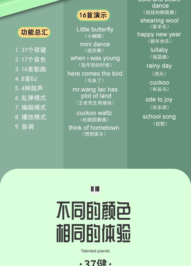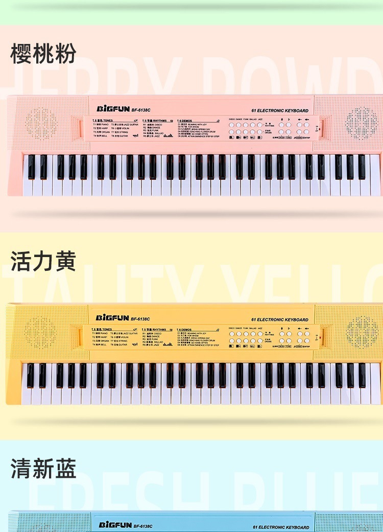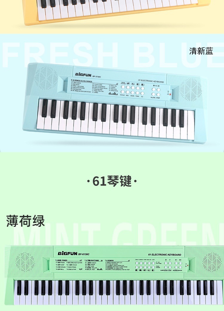 | Colores | Clave negra clásica/37 [juego gratis de 6 piezas/batería] (modo de fuente de alimentación dual),Clave negra clásica/37 [juego gratis de 6 piezas/carga] (modo de fuente de alimentación dual),Modelo azul/37 teclas [juego gratis de 6 piezas/batería] (modo de fuente de alimentación dual),Modelo azul/37 teclas [juego gratis de 6 piezas/carga] (modo de fuente de alimentación dual),Rosa/37 teclas [juego de 6 piezas/batería gratis] (modo de fuente de alimentación dual),Rosa/37 teclas [juego de 6 piezas gratis/carga] (modo de fuente de alimentación dual),Modelo amarillo/37 teclas [juego gratis de 6 piezas/batería] (modo de fuente de alimentación dual),Modelo amarillo/37 teclas [juego gratis de 6 piezas/carga] (modo de fuente de alimentación dual),Modelo verde/37 teclas [juego gratis de 6 piezas/batería] (modo de fuente de alimentación dual),Modelo verde/37 teclas [juego gratis de 6 piezas/carga] (modo de fuente de alimentación dual),Clave negra clásica/61 [juego gratis de 6 piezas/batería] (modo de fuente de alimentación dual),Clave negra clásica/61 [juego gratis de 6 piezas/carga] (modo de fuente de alimentación dual),Modelo azul/61 teclas [juego gratis de 6 piezas/batería] (modo de fuente de alimentación dual),Modelo azul/61 teclas [juego gratis de 6 piezas/carga] (modo de fuente de alimentación dual),Rosa/61 teclas [juego de 6 piezas/batería gratis] (modo de fuente de alimentación dual),Rosa/61 teclas [juego gratis de 6 piezas/carga] (modo de fuente de alimentación dual),Estilo de dibujos animados/14 teclas [juego de 4 piezas/batería gratis] (modo de fuente de alimentación única) |