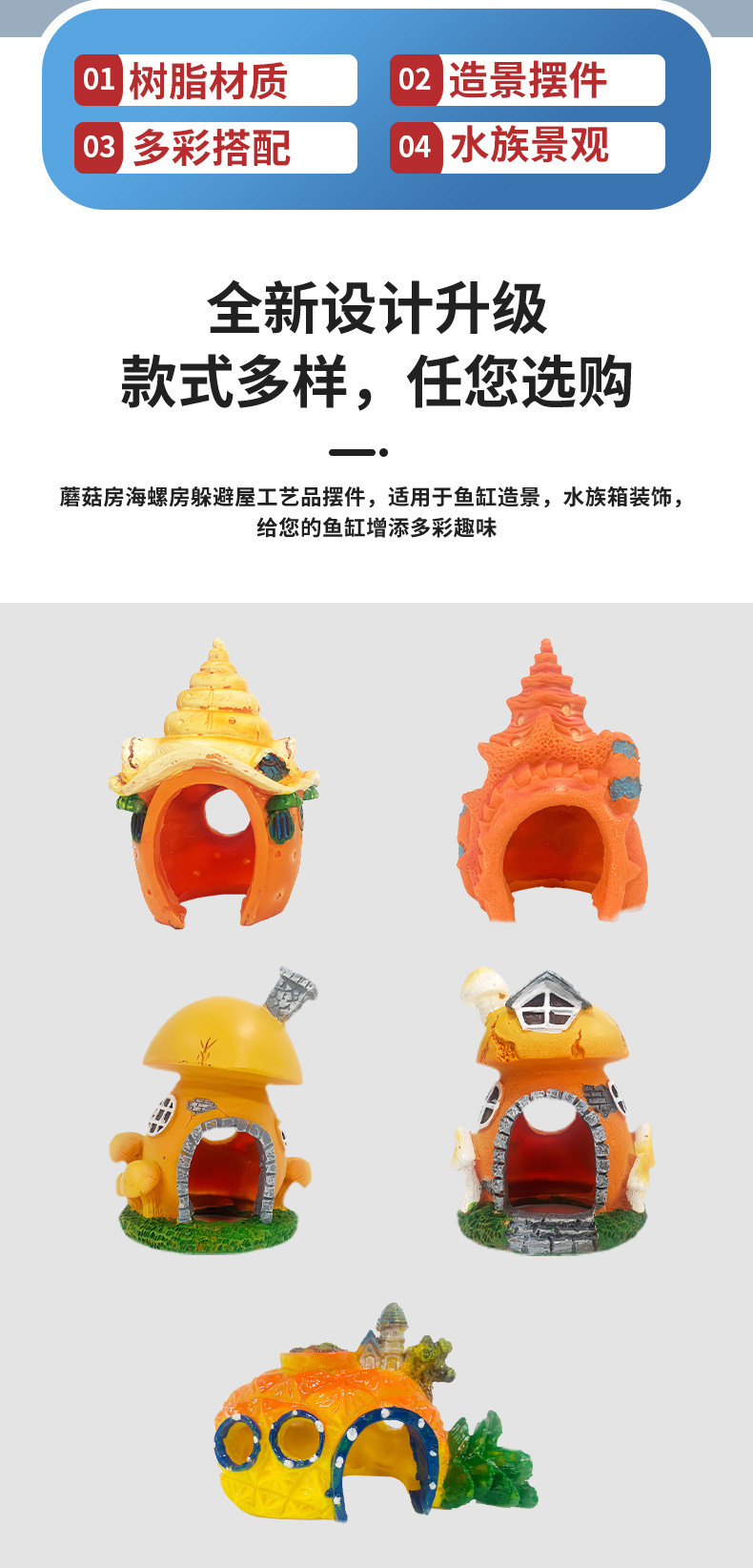 Tanque de peces acuario resina decoración cangrejo ermitaño evitar resina setas Concha habitación paisajismo caja de alimentación CANGREJO