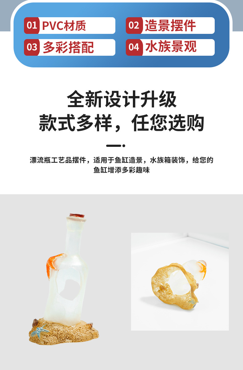 Pecera explosiva, decoración de acuario, arena inferior, rocalla, tanque de agua hundida, botella a la deriva, fondo hundido, micropaisaje, casa de refugio